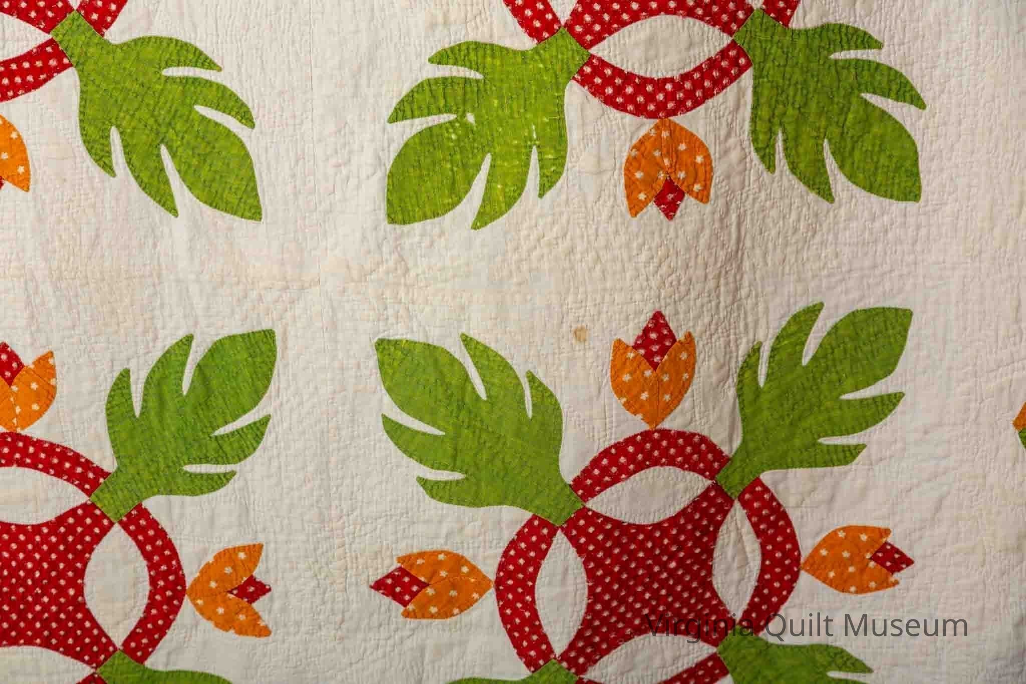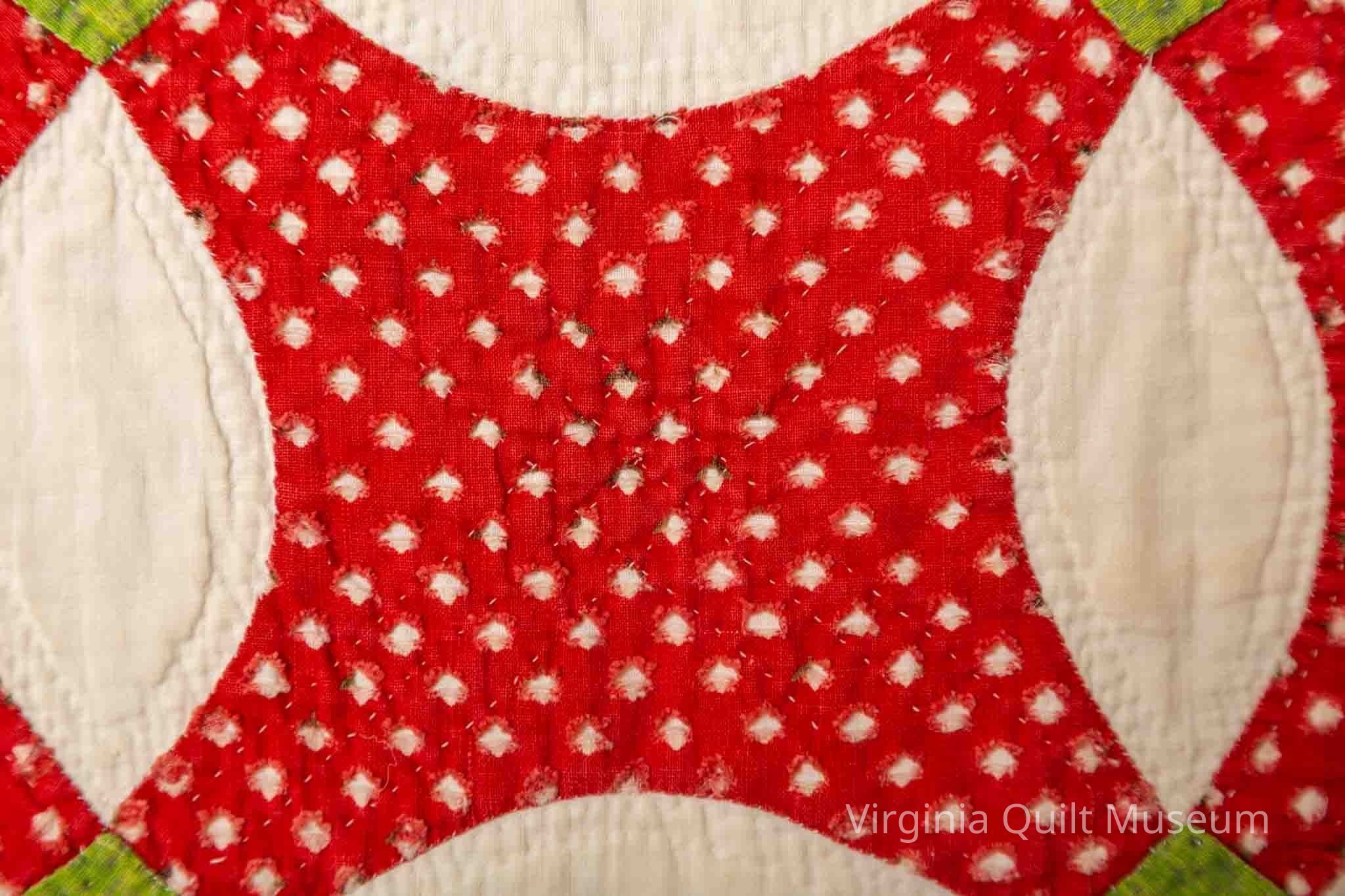 The entire quilt is hand quilted (7 stitches per inch), featuring outline and echo quilting. The quilting was done using white, cotton thread. It is composed of a thin cotton batting.