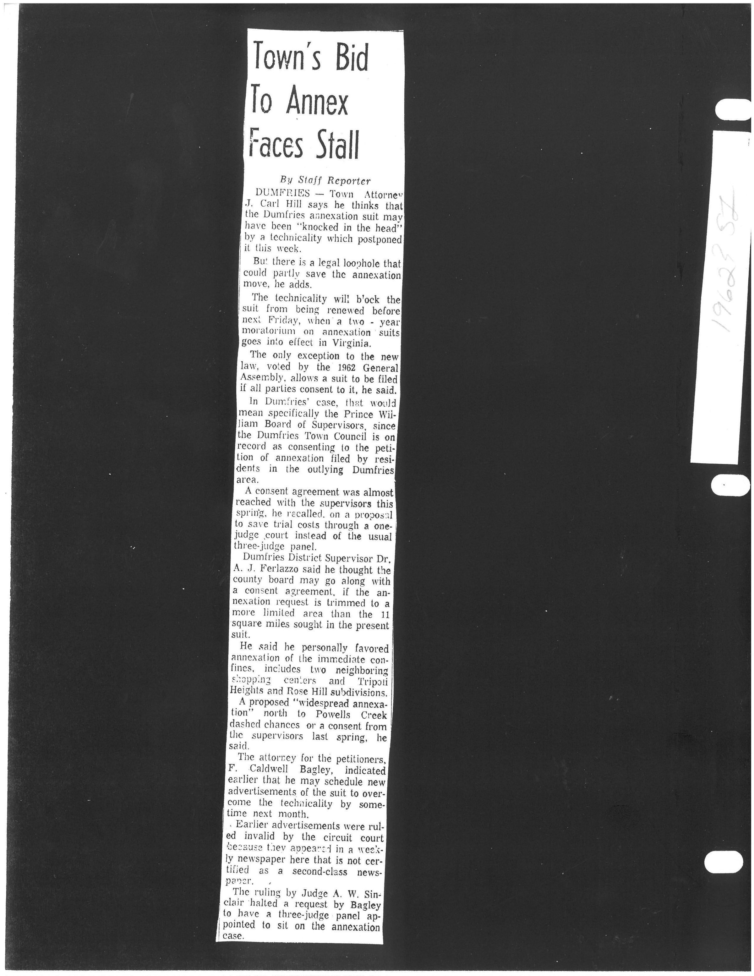 1962 Article: Town's Bid to Annex Faces StallCataloged By