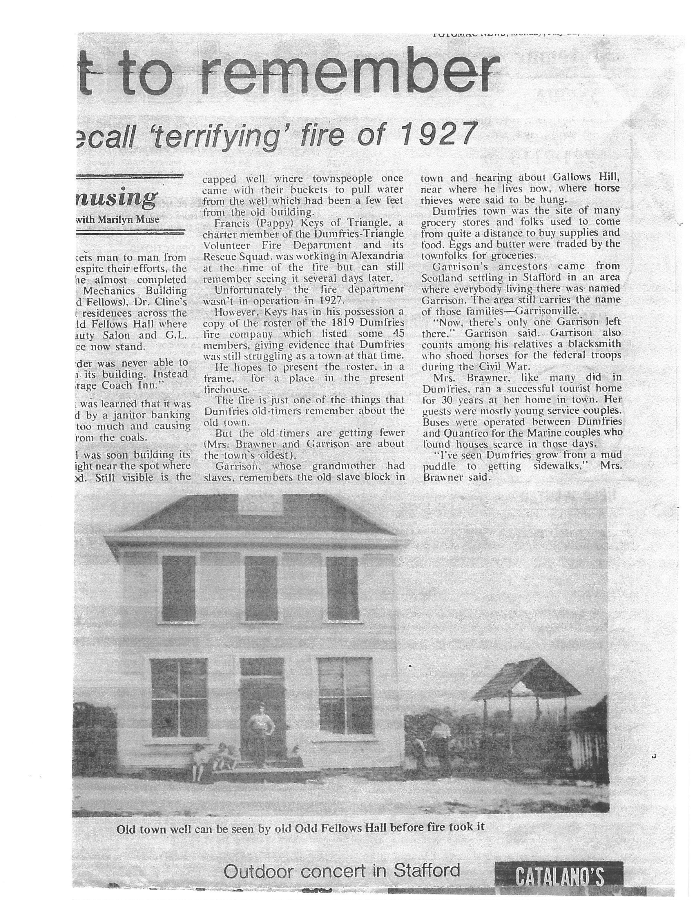 Cecil Garrison, 79, a native of Dumfries, and still active in the town's civic affairs, remembers he was attending a meeting at the IOOF Hall the night of the fire.