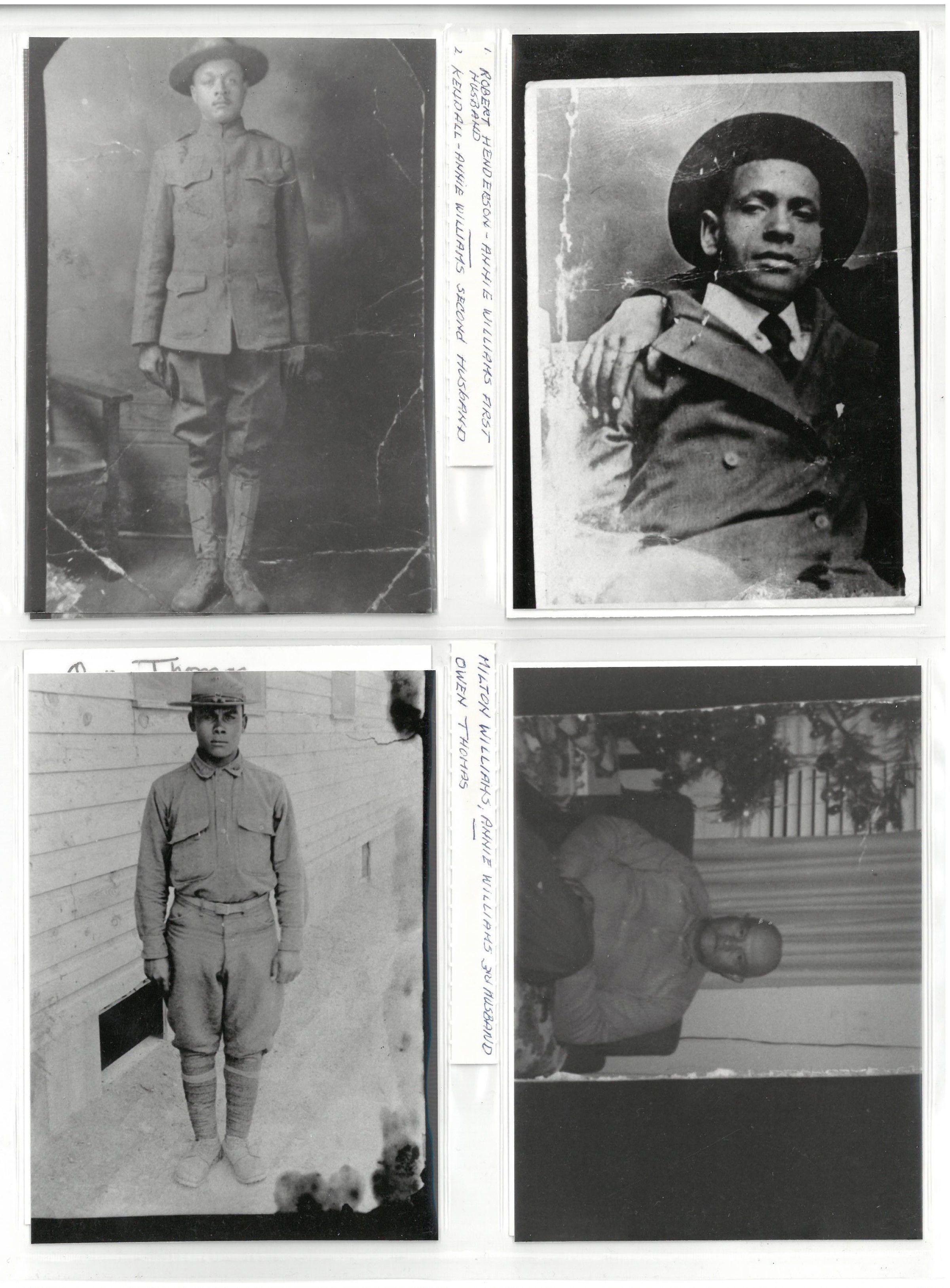 (From top right to bottom left): Robert Henderson - Annie Williams' first husband, Kendall - Annie Williams' second husband, Milton Williams - Annie Williams' third husband and Owen ThomasPhotograph Details