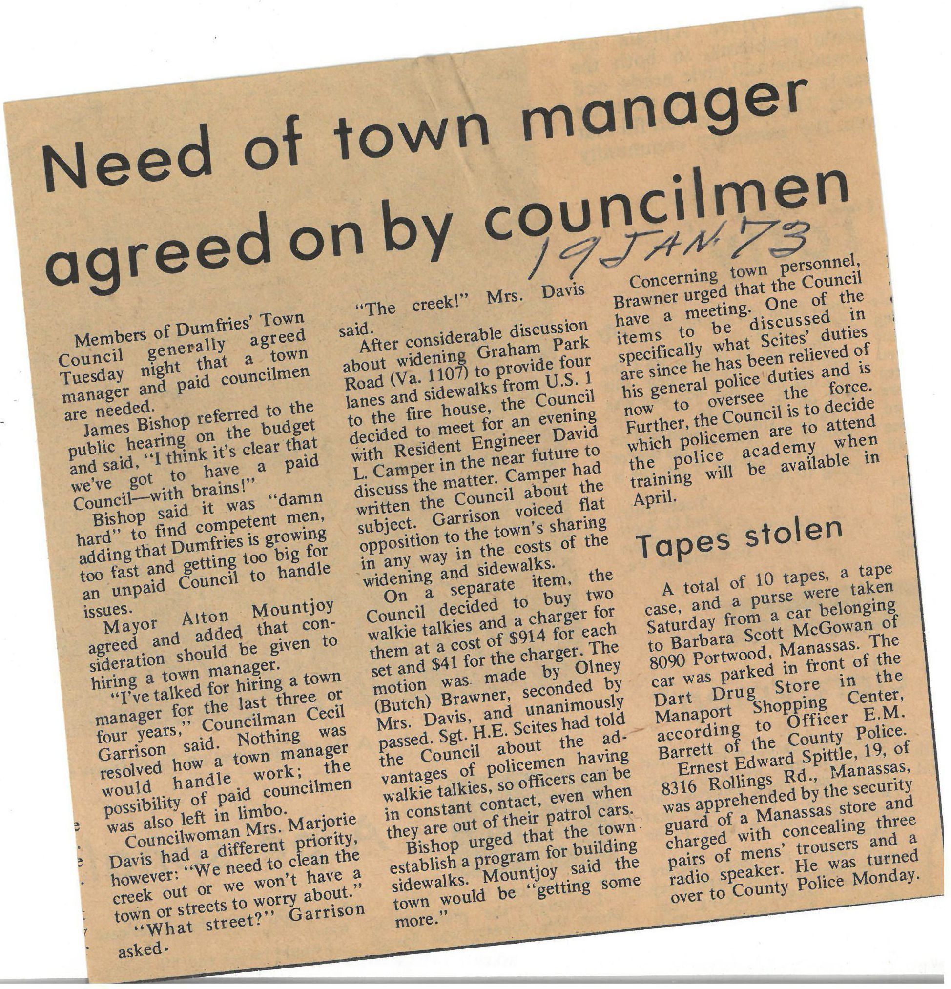 Members of Dumfries' Town Council generally agreed Tuesday night that a town manager and paid councilmen are needed.