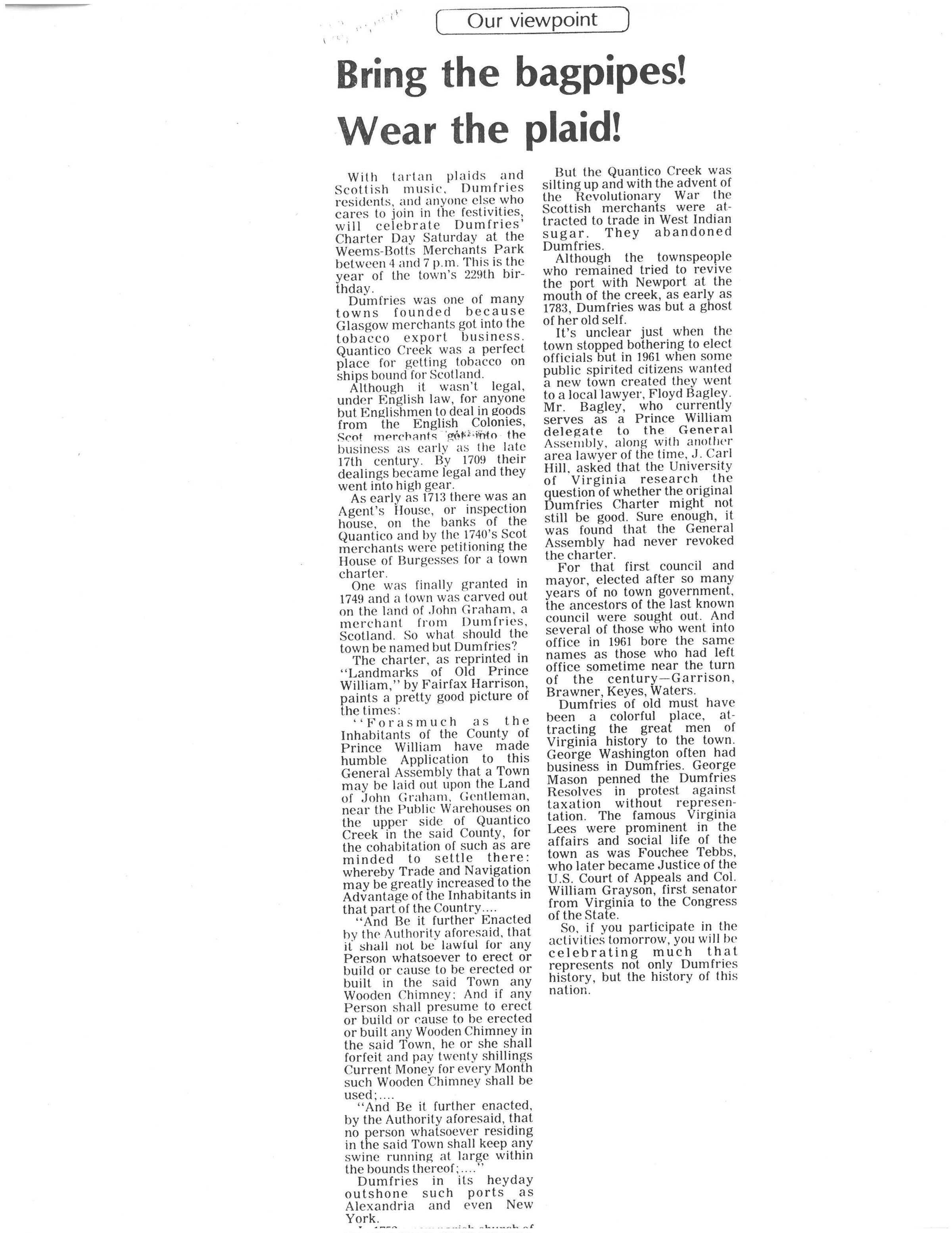 Dumfries Charter might not