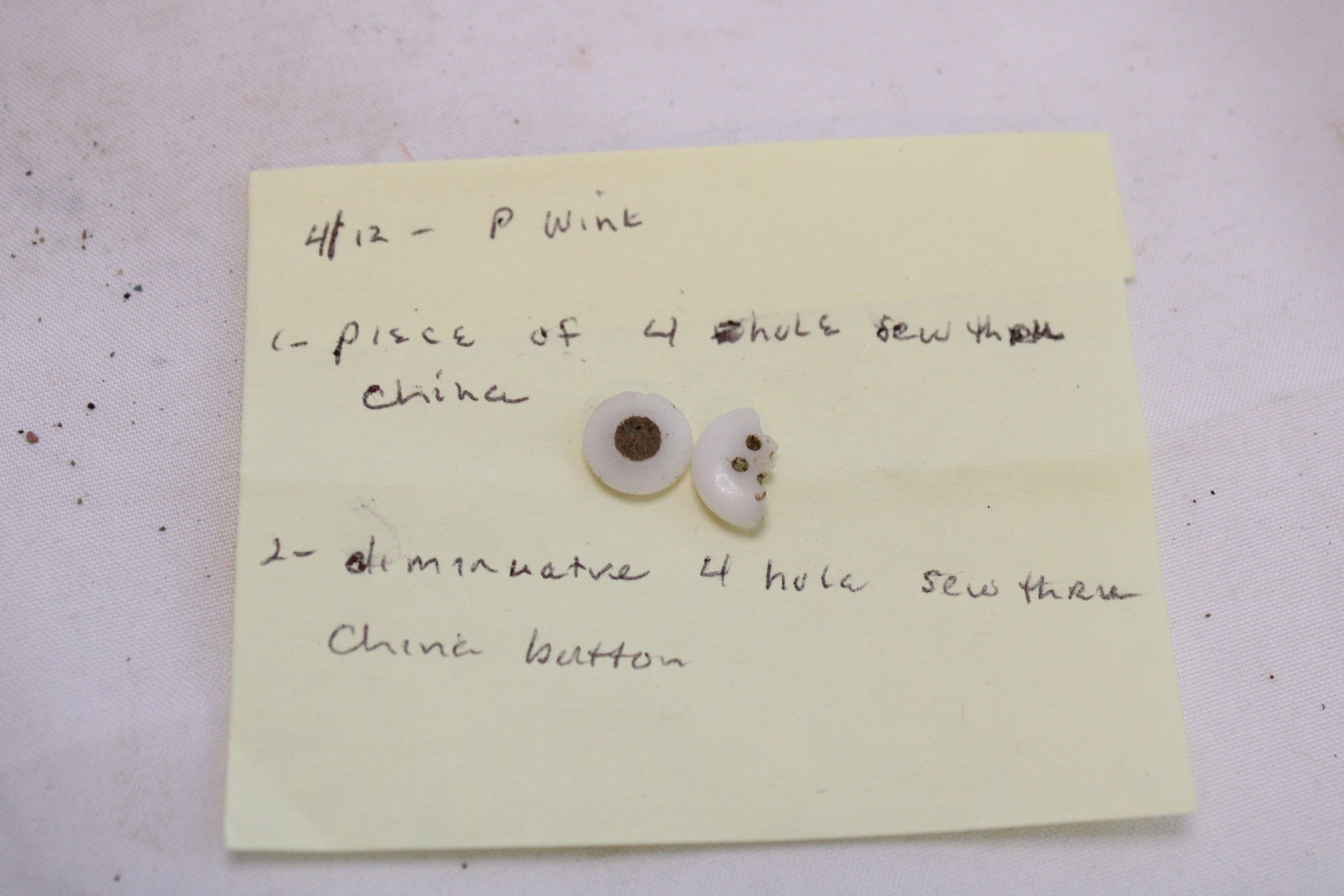 Piece of 4 hole sew through china button and whole 4 hole sew through china buttonCataloged By