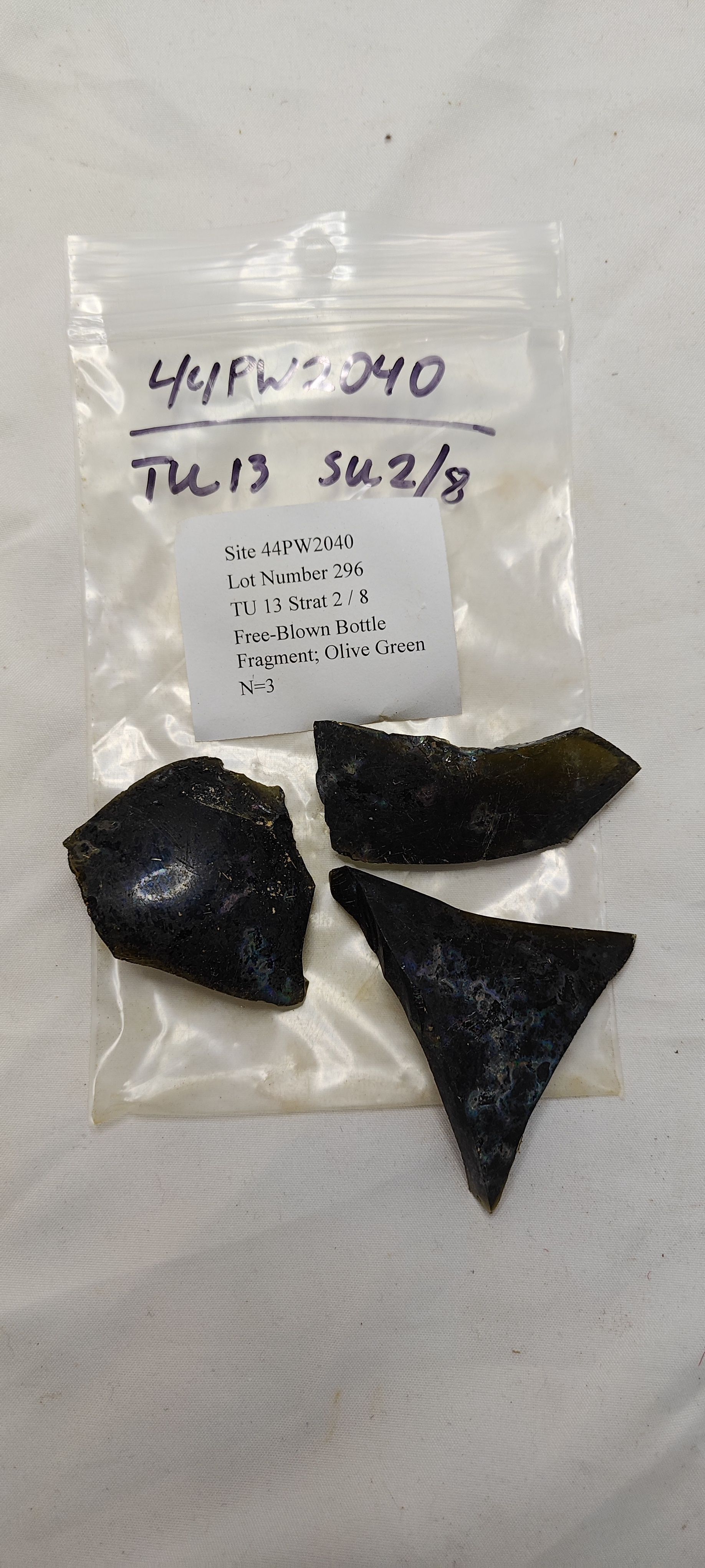 Free-Blown Bottle Fragment; Olive GreenDescription