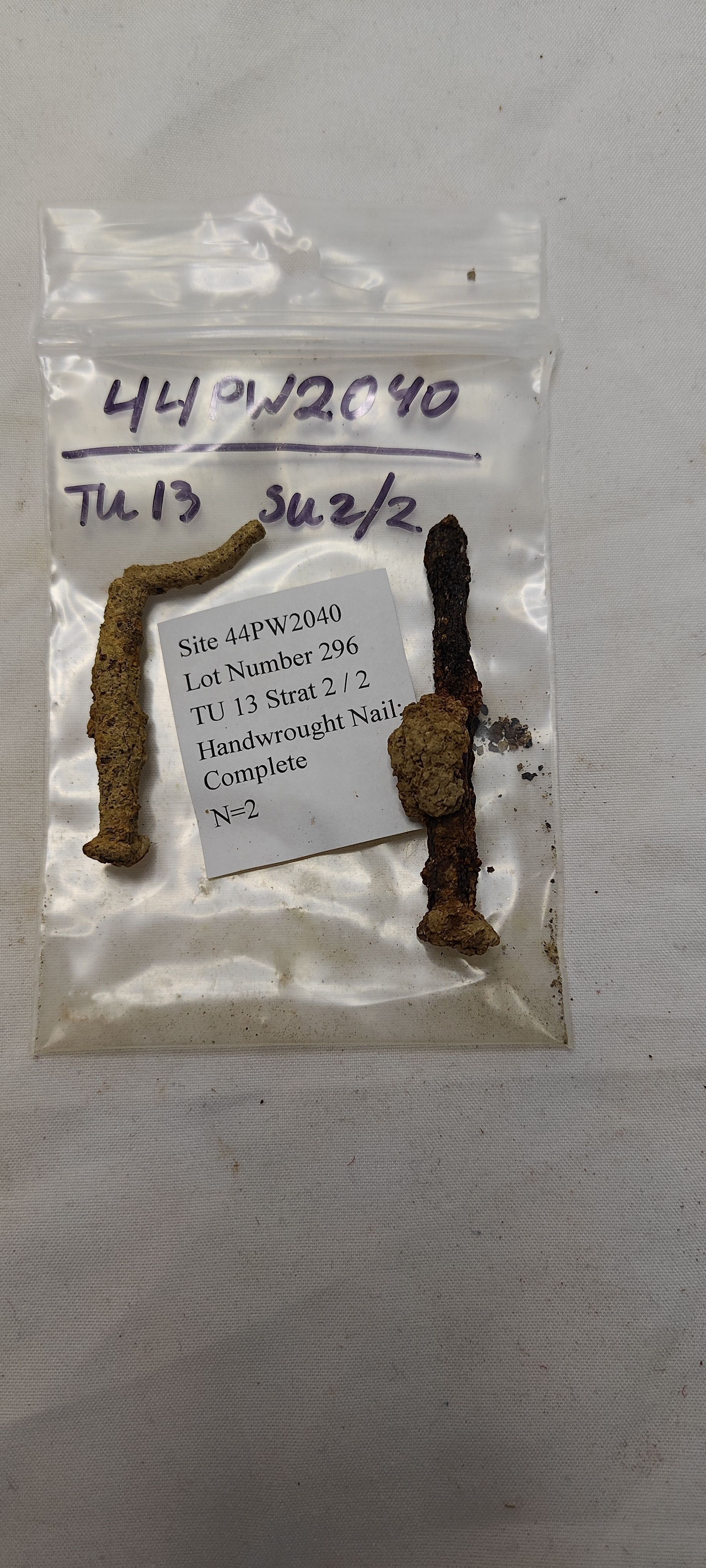 Hand wrought nail; complete
