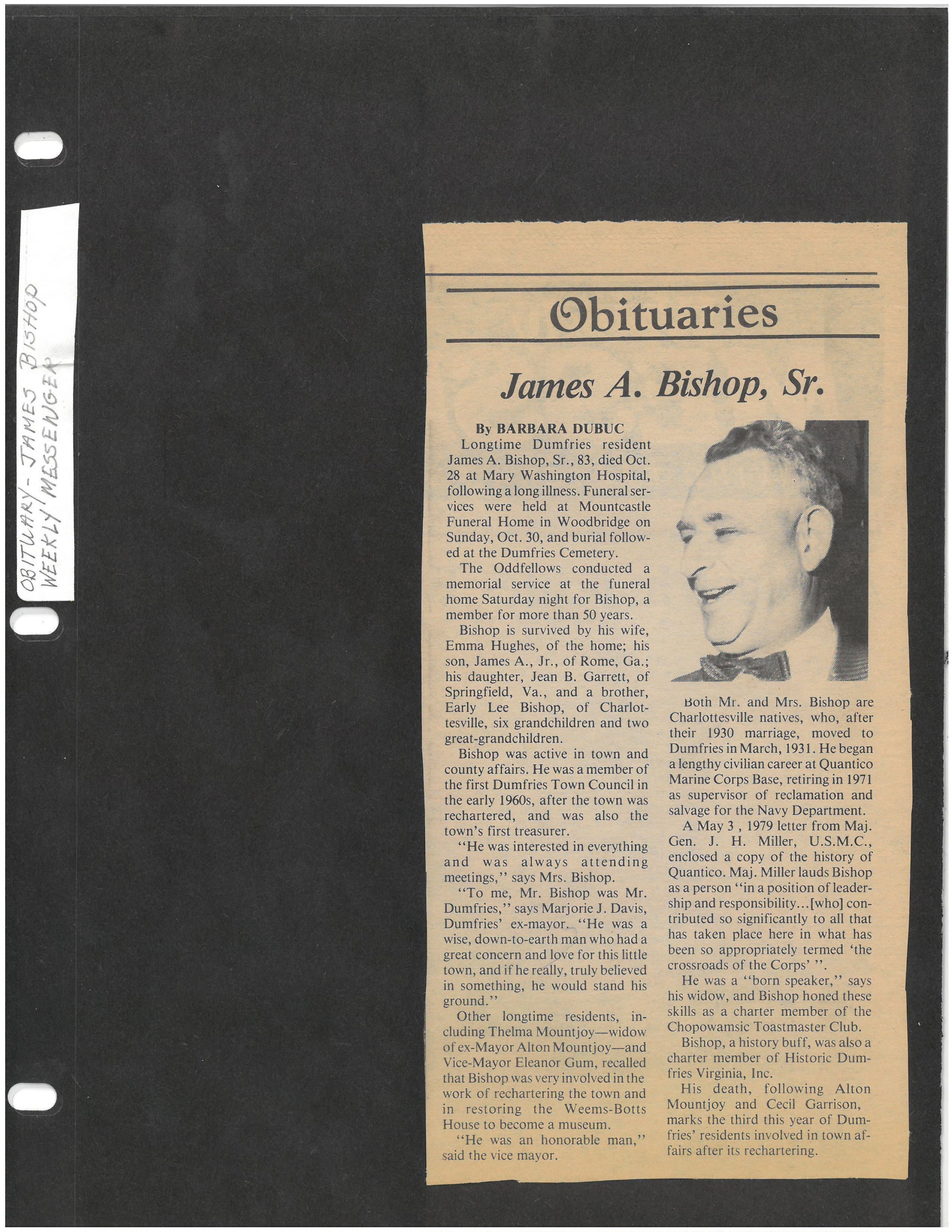 James A. Bishop, Sr., 83, died Oct.