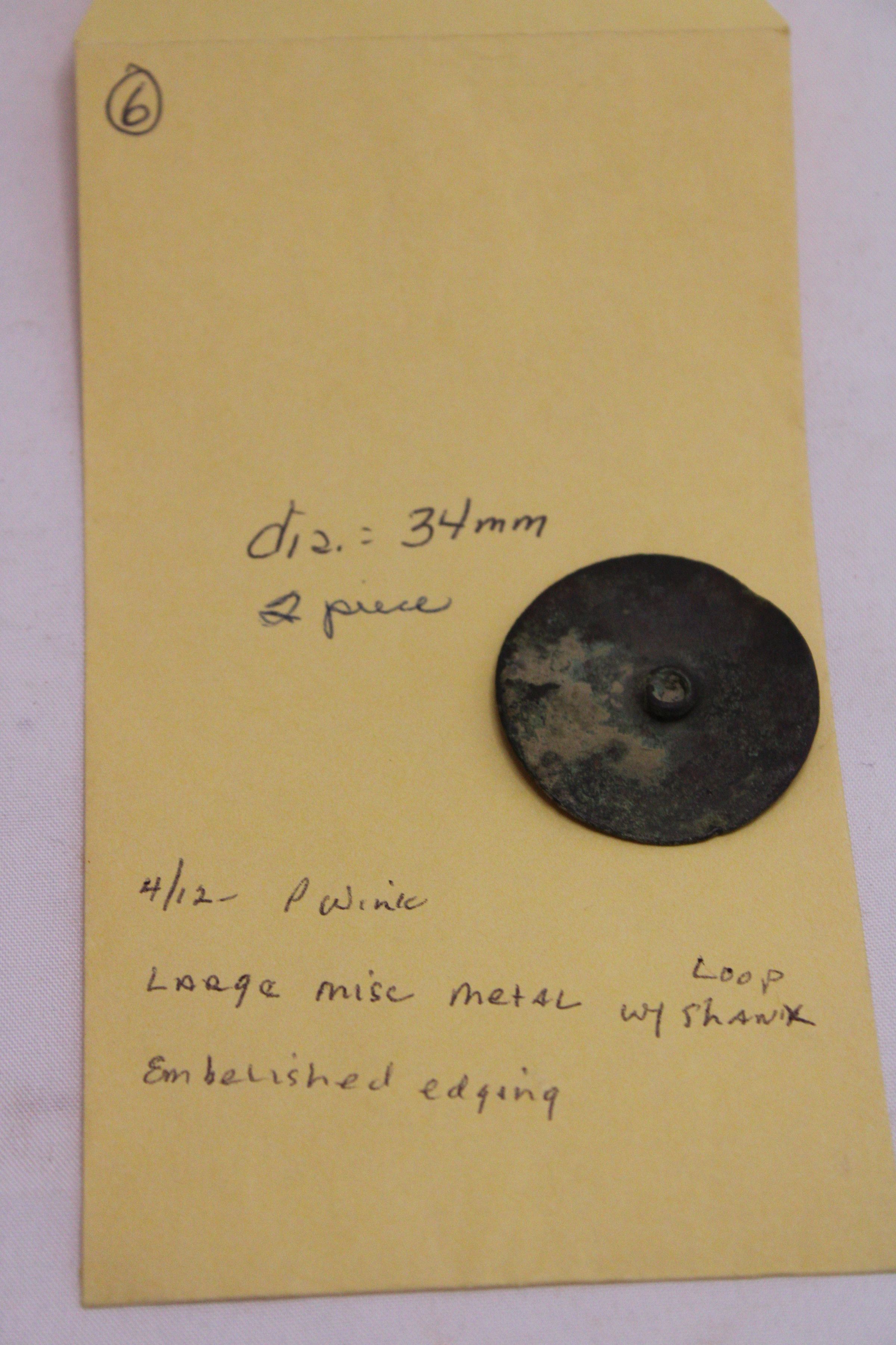 Large misc metal with loop shank, embellished edgingCataloged By