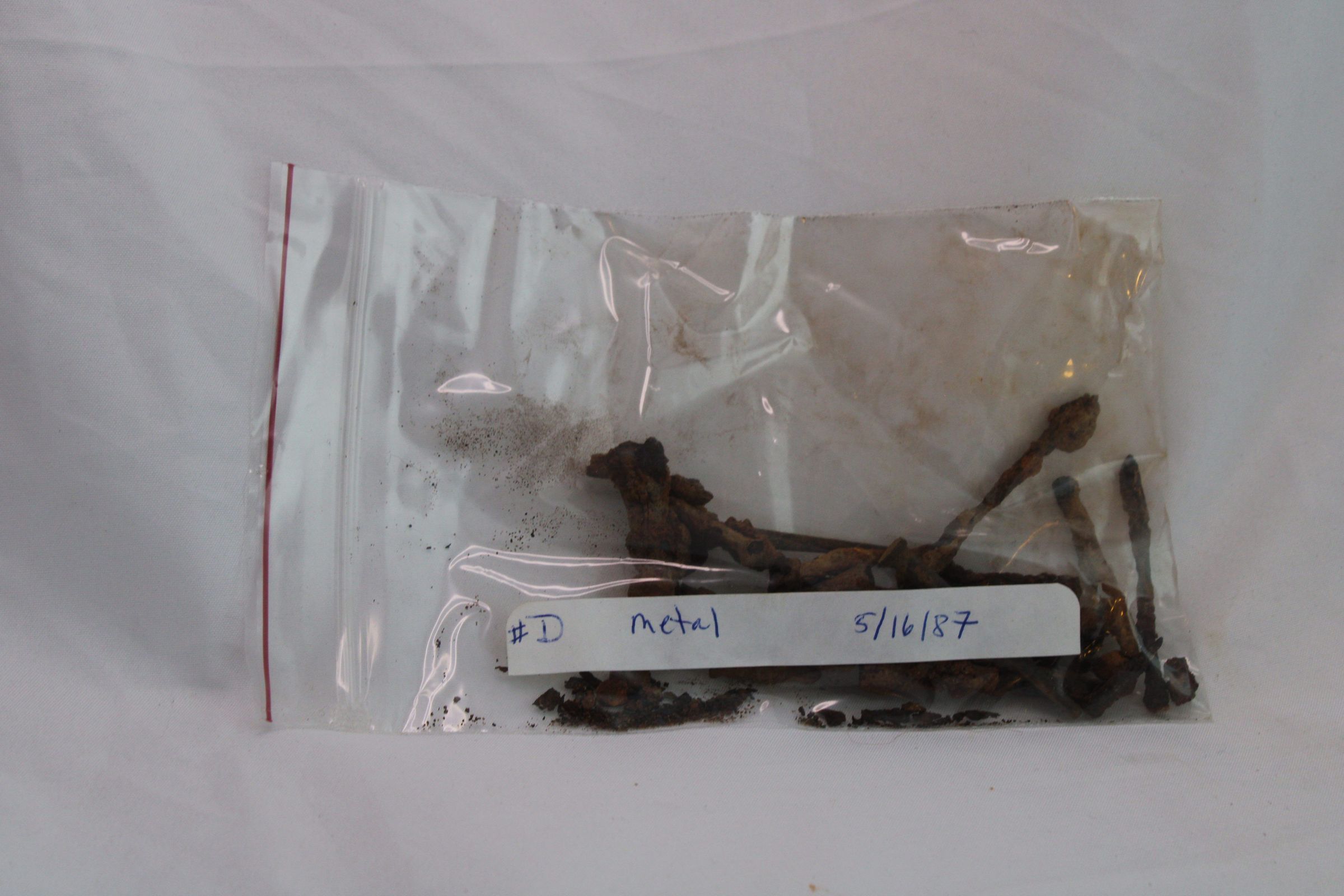 Unidentified metal fragments excavated May 16th, 1987 from trench DCataloged By
