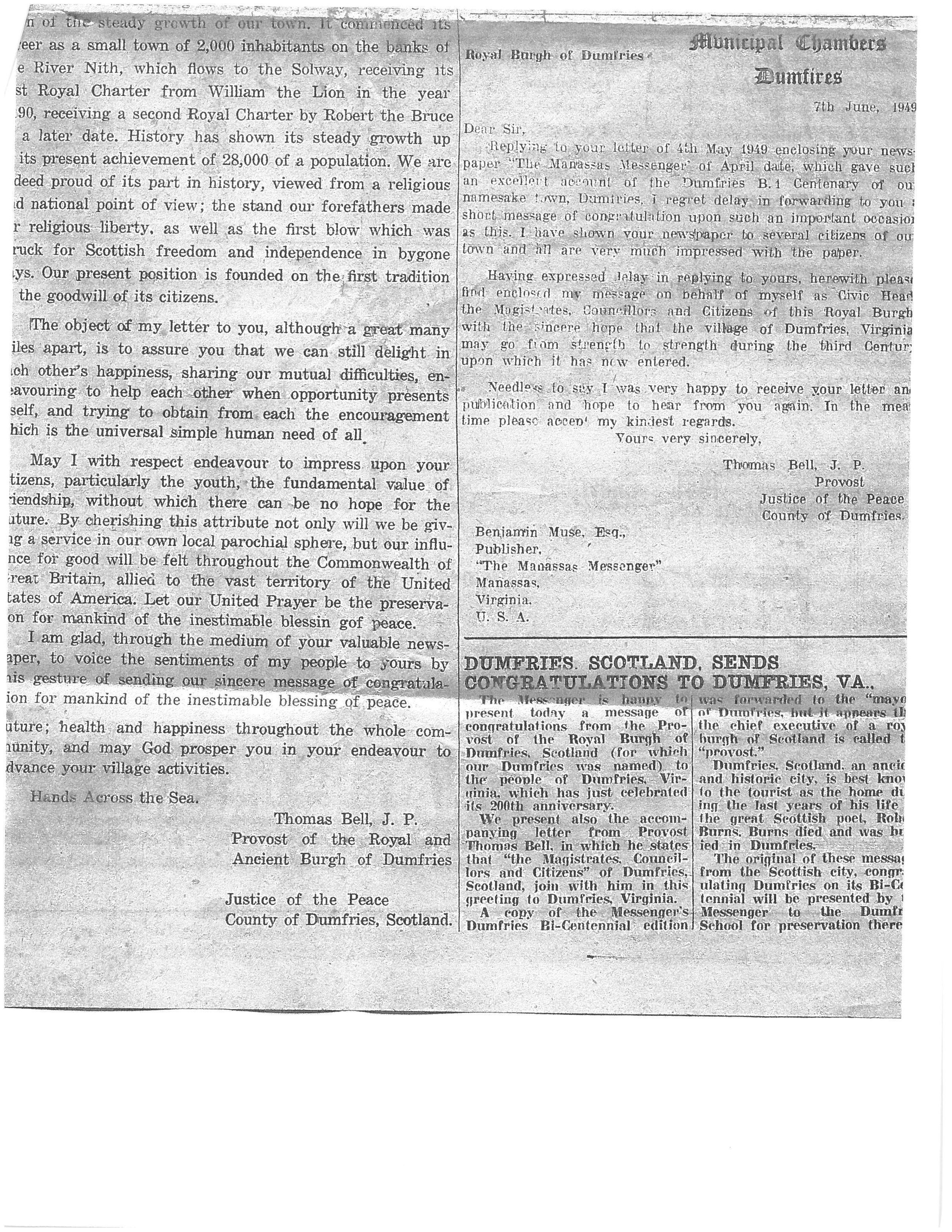namesake town, Dumfries, I regret delay in forwarding to you a