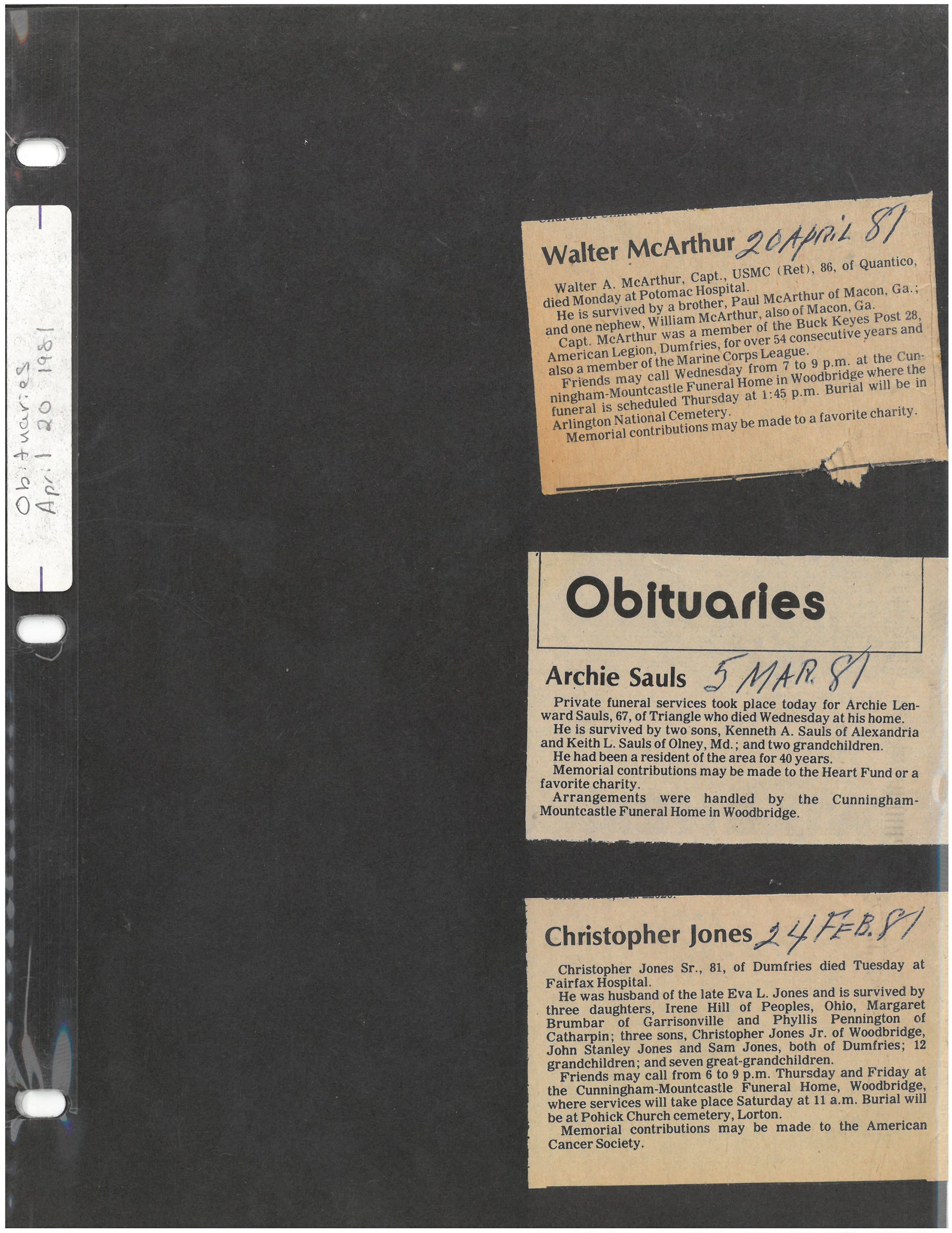 Catharpin; three sons, Christopher Jones Jr. of Woodbridge,