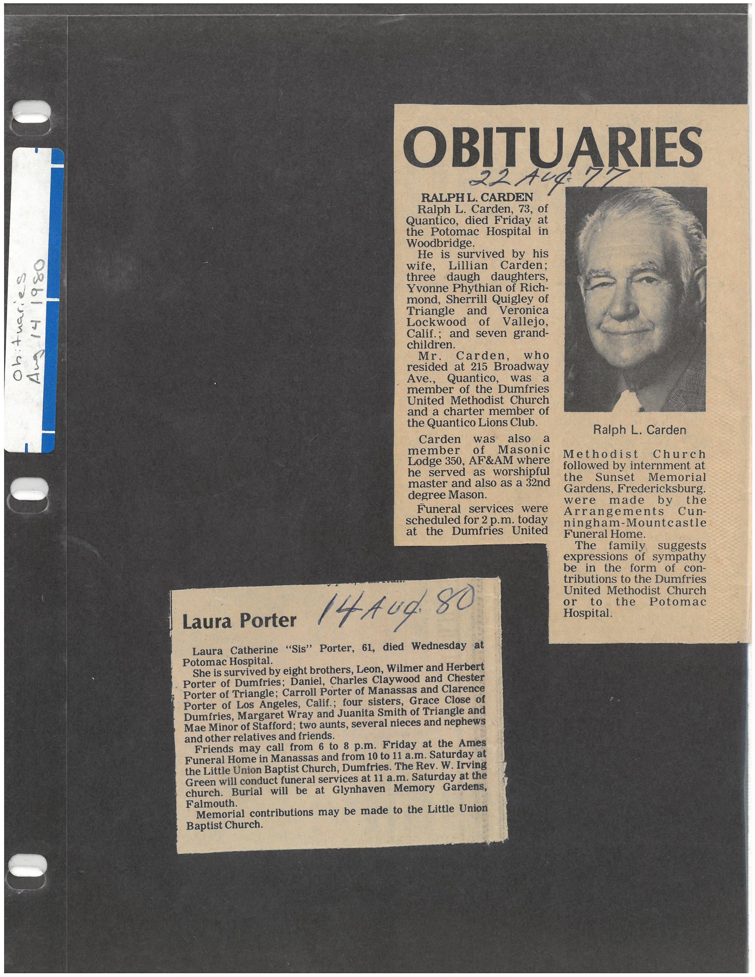 Porter of Triangle; Carroll Porter of Manassas and Clarence