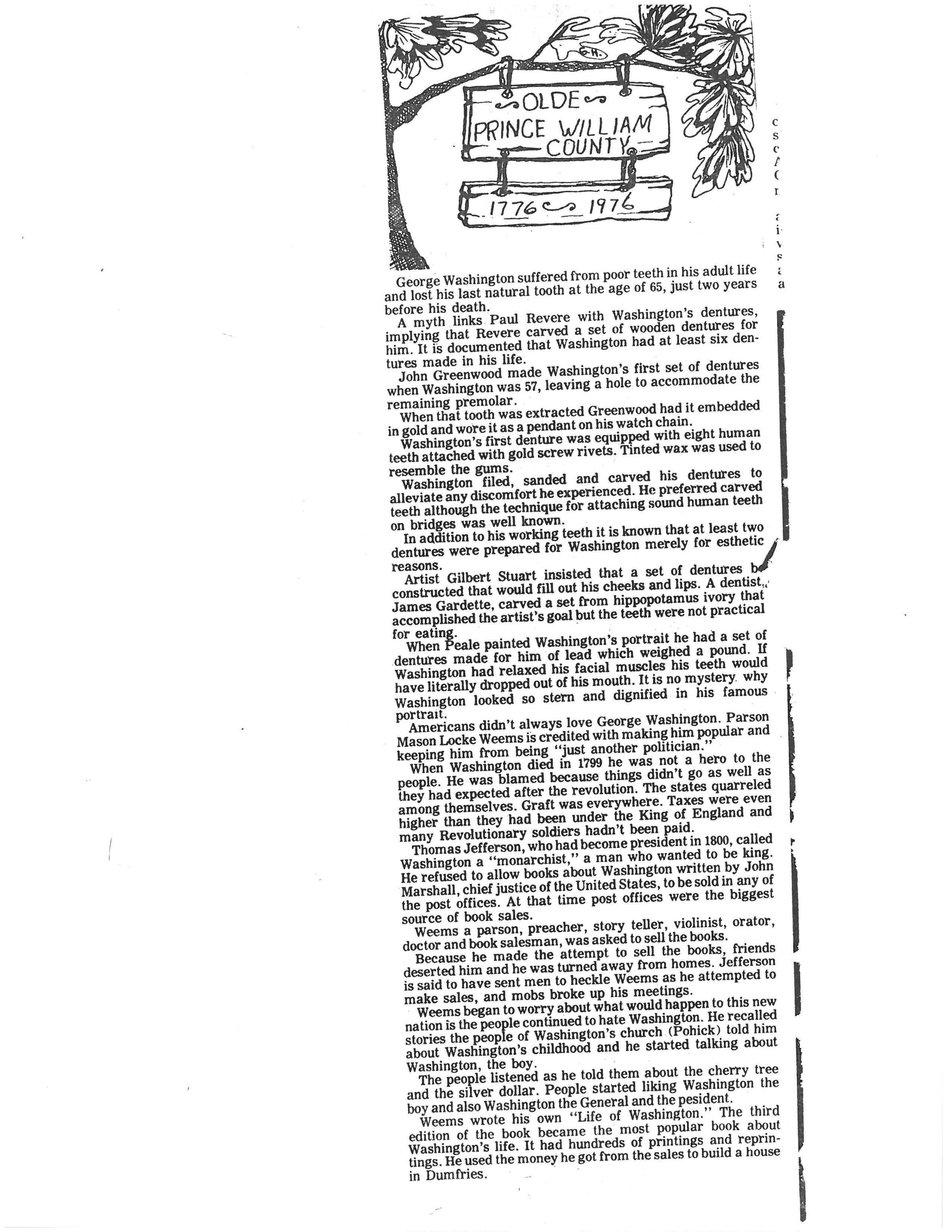 him. It is documented that Washington had at least six dentures