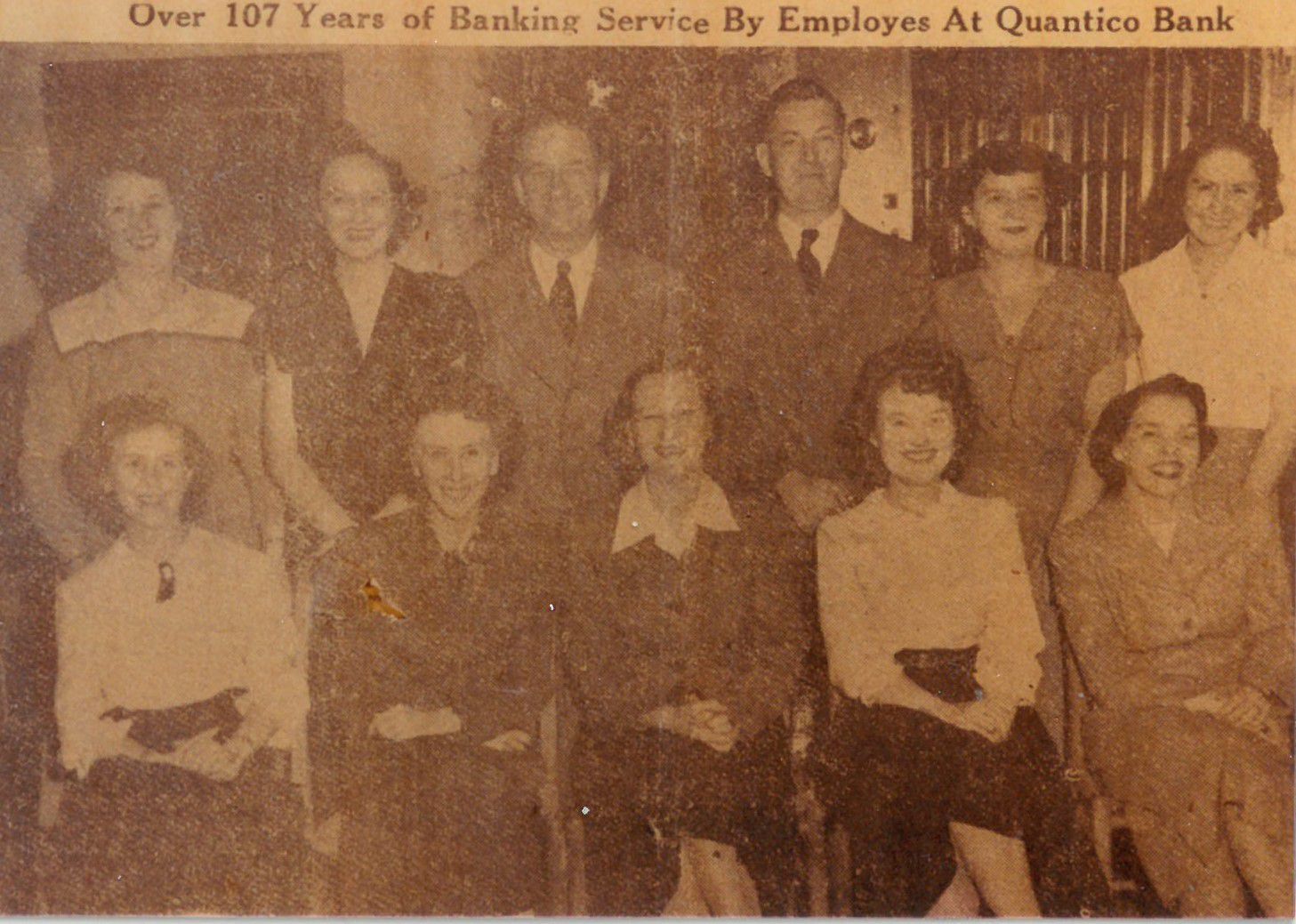 Newspaper photo of eleven bank employees of Quantico BankPhotograph Details