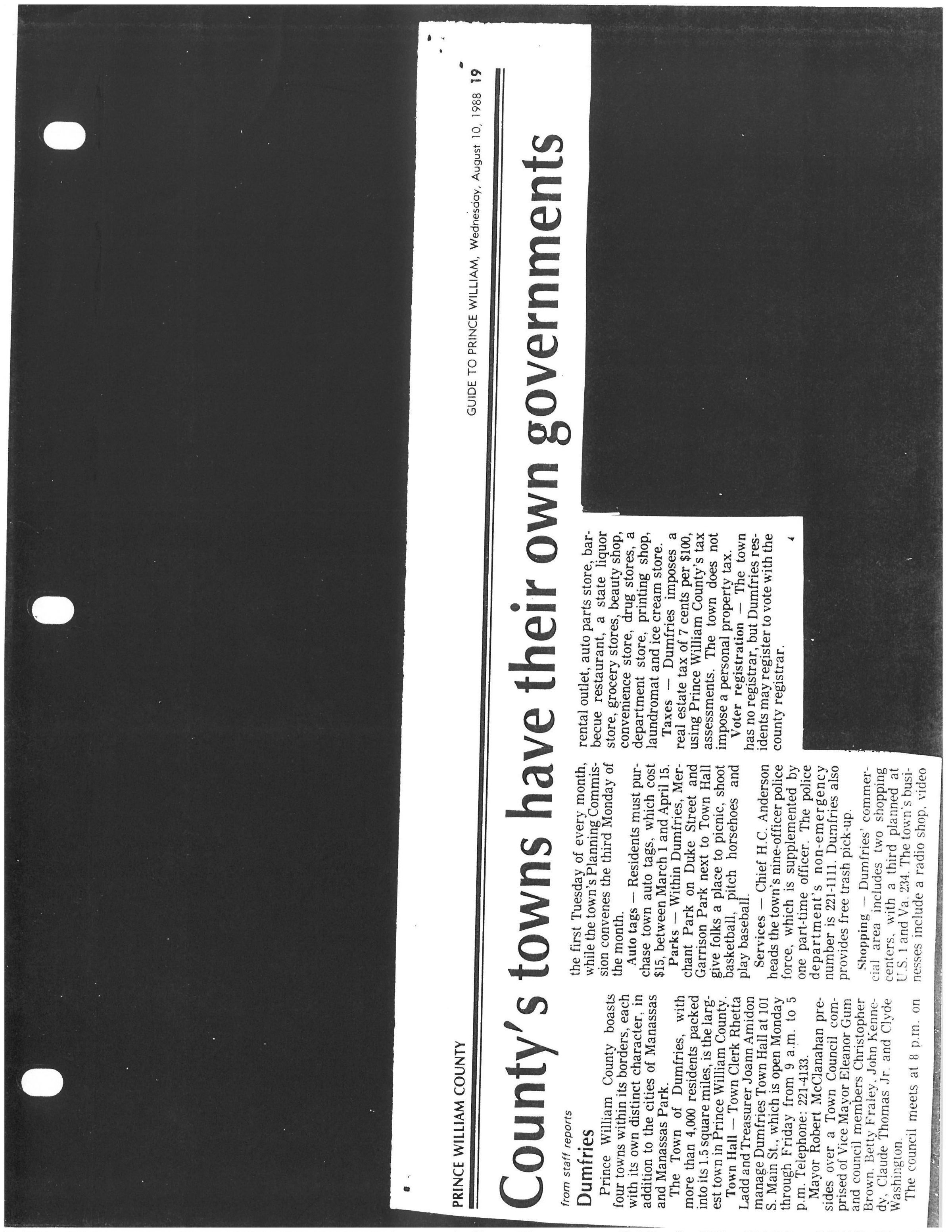 Taxes- Dumfries imposes a real estate tax of 7 cents per $100, using Prince William County's tax assessments. The town does not impose a personal property tax.