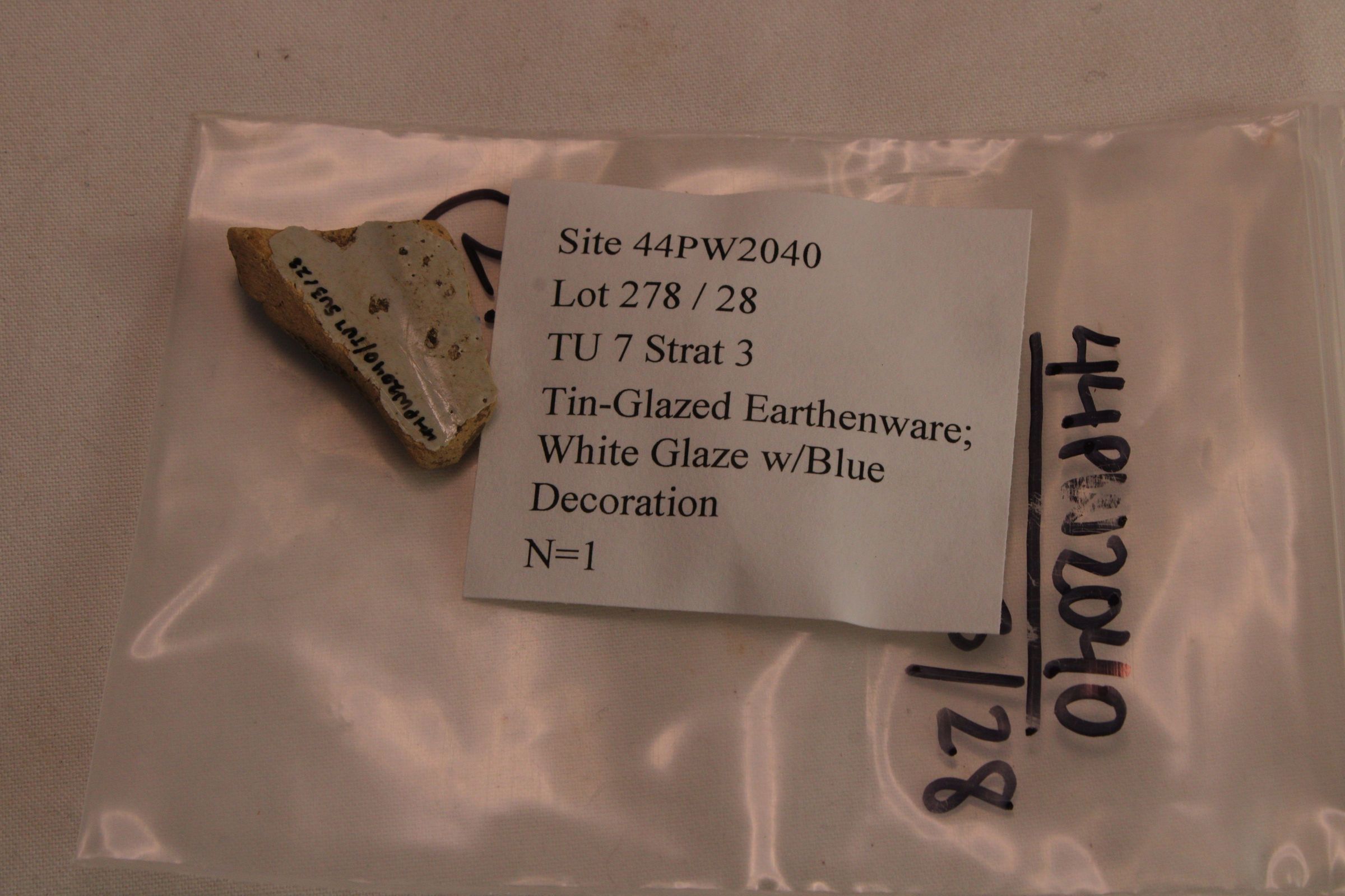 Tin-Glazed Earthenware; White Glaze w/Blue DecorationDescription
