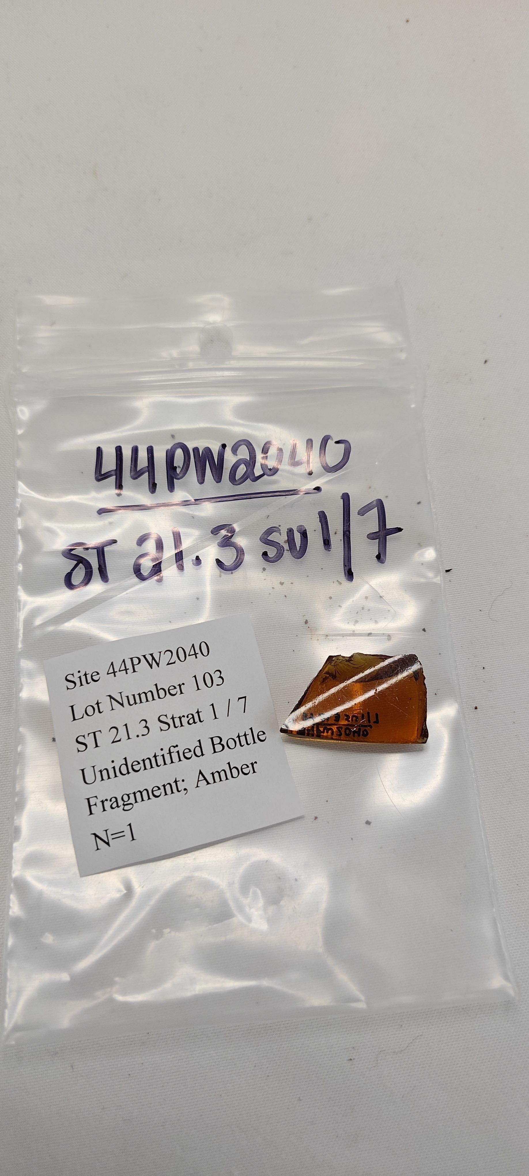 Unidentified Bottle Fragment; AmberCataloged By