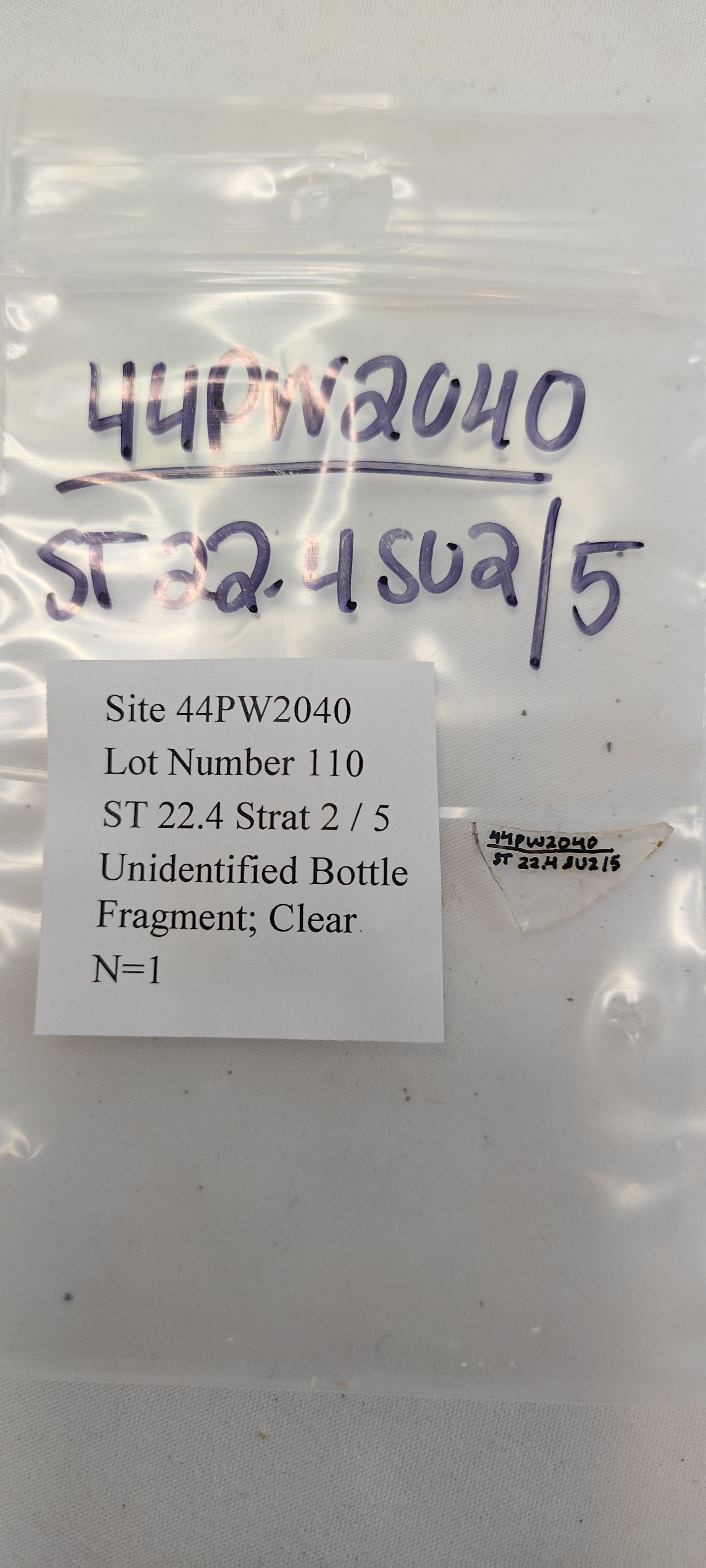 Unidentified Bottle Fragment; ClearCataloged By