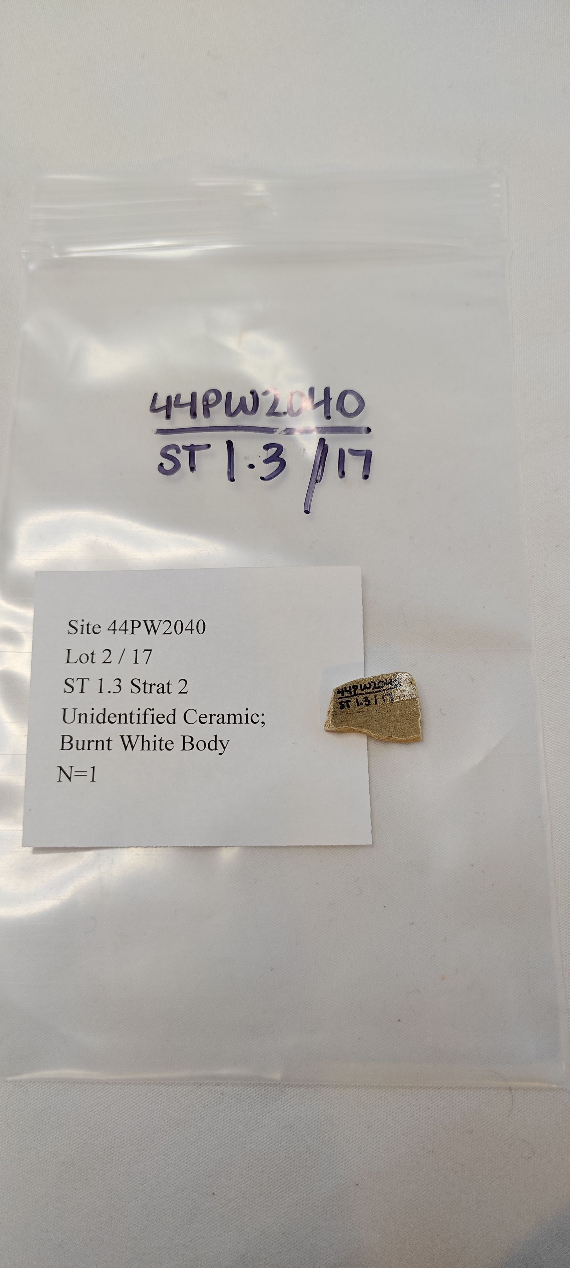 Unidentified Ceramic; Burt White BodyCataloged By