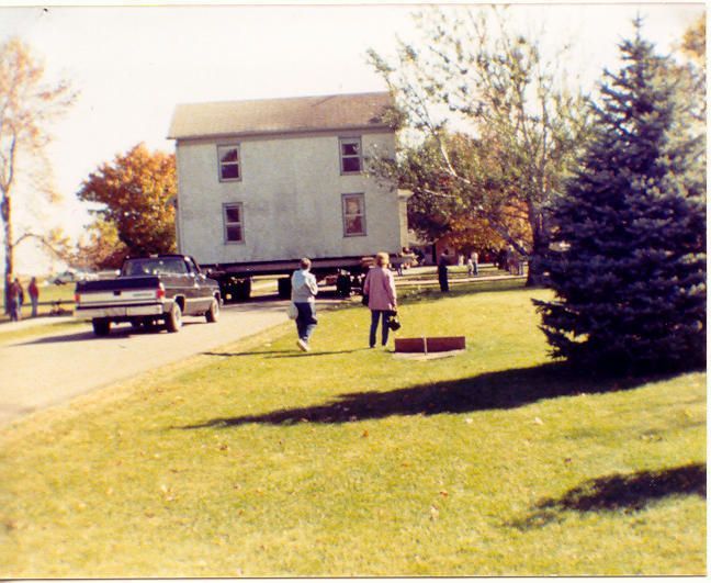 Moving the Methodist Parsonage down Coady Drive. c1989 Between Osceola and Wabena.