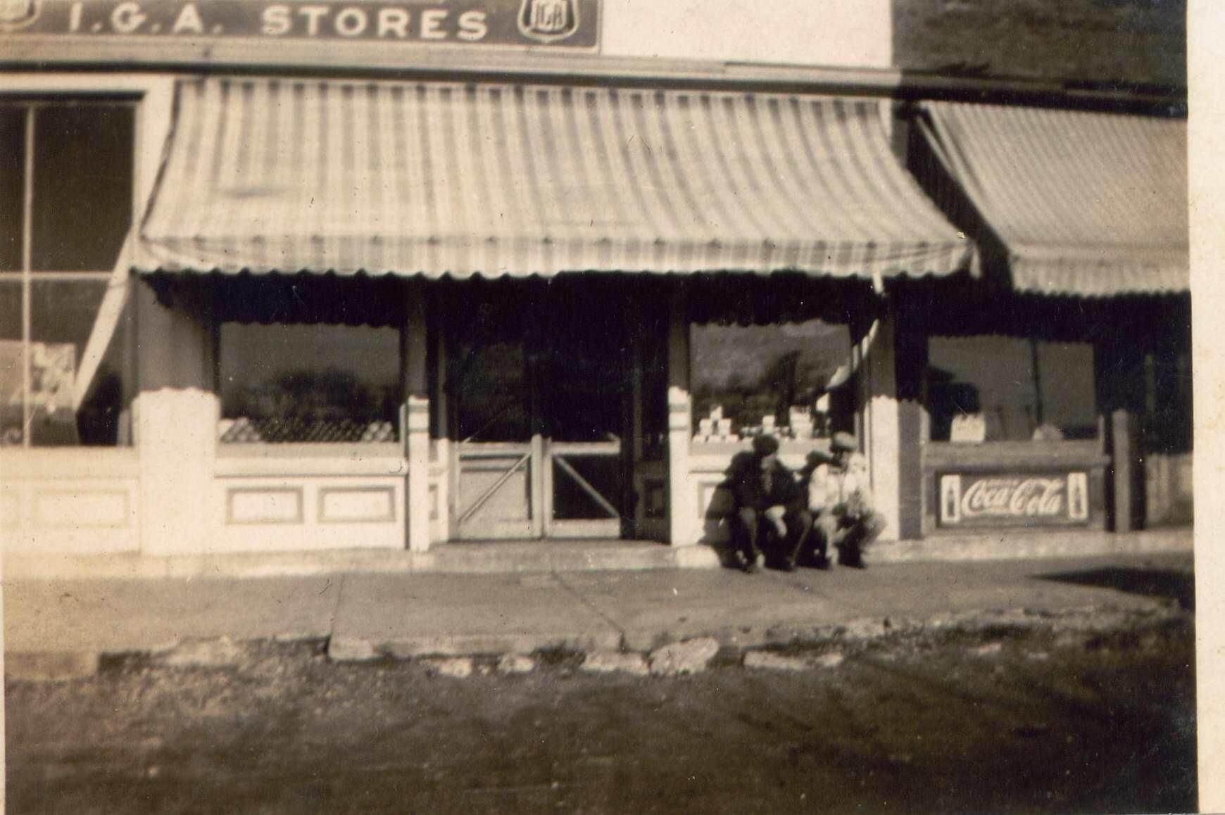 Frank Feehan's IGA Store on Mondamin St. opened in 1927 when the Rock Island Tracks were lowered. Winkie Hopper's Barber shop is on the right.