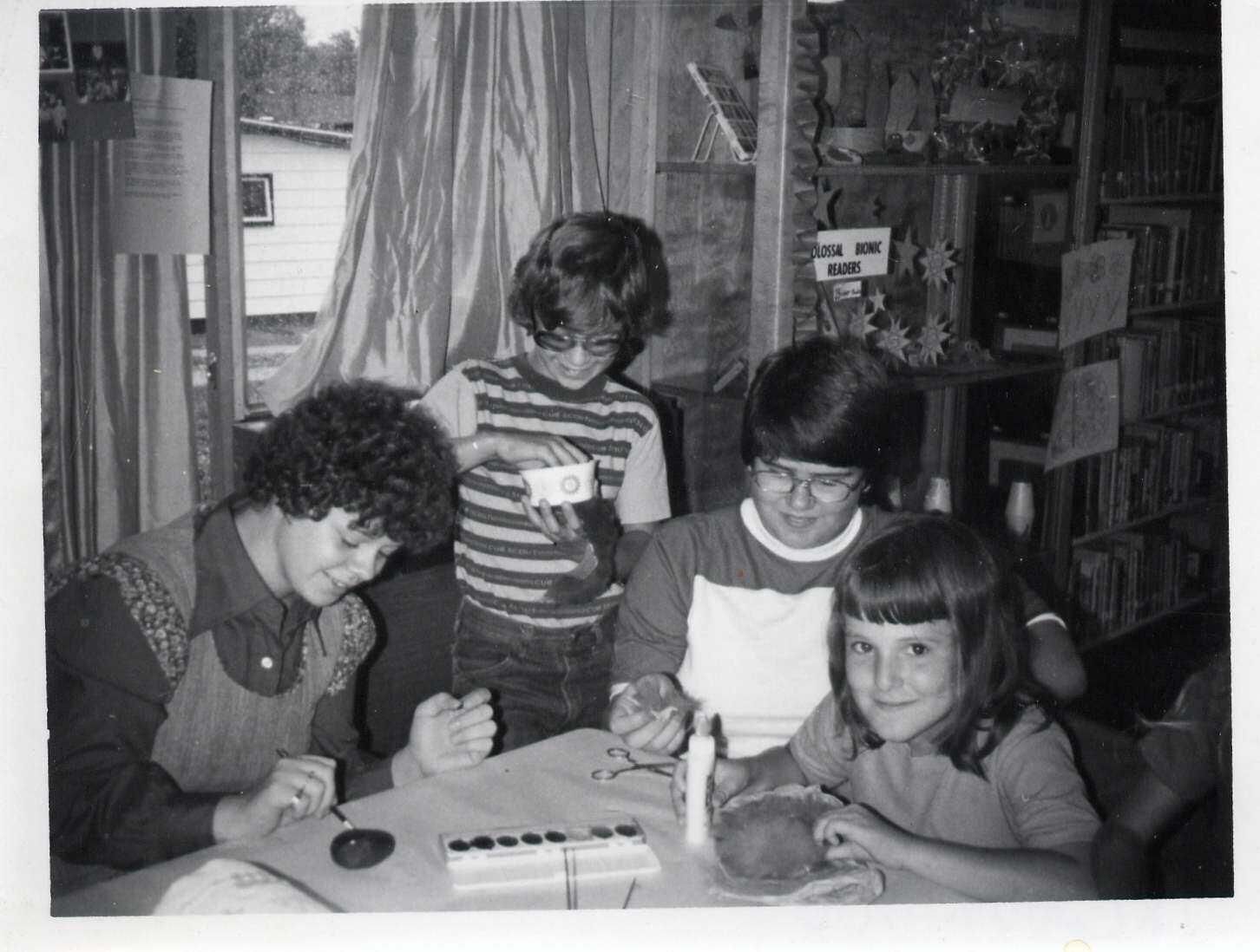 Terry Fitch, Allan Chesko, Penny Smith, Terana Marshall doing a craft at the Tri-County Library