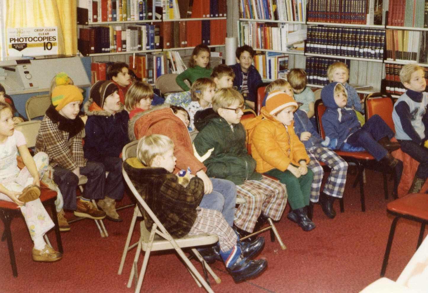 Watching a puppet show at the Tri-County Library