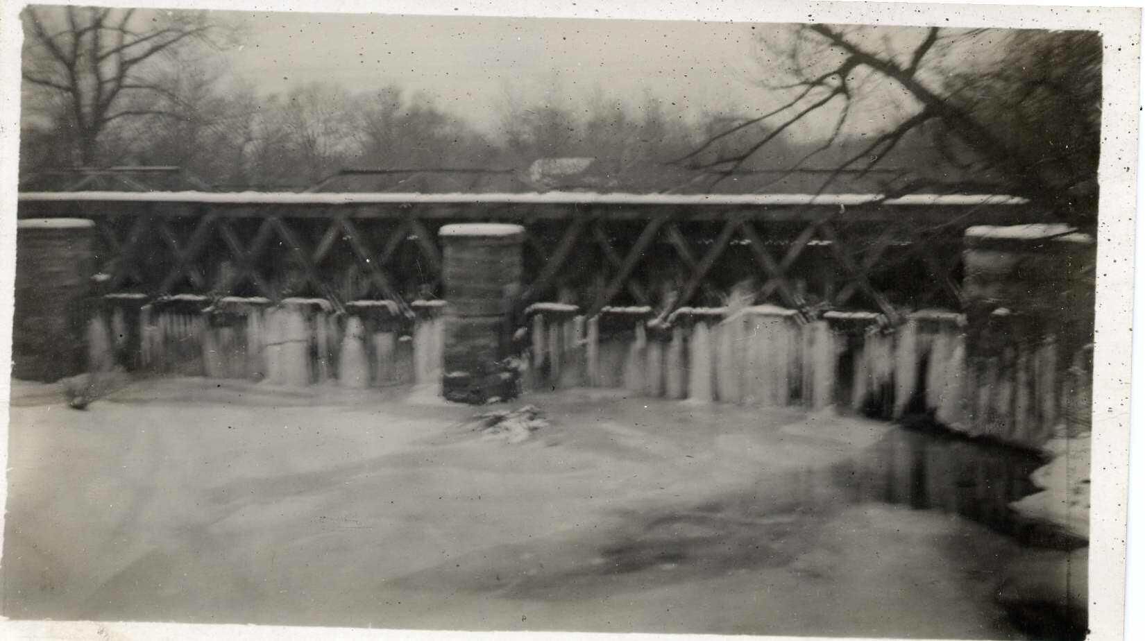 Postcard showing frozen Aux Sable Aqueduct. undated, unmailed pr