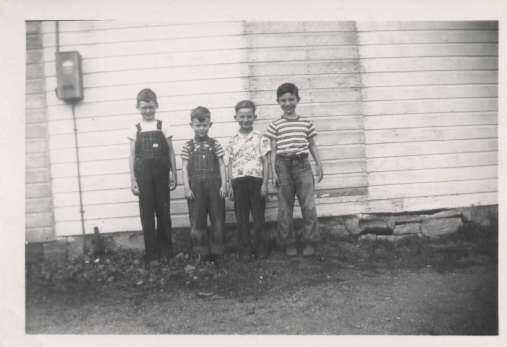 4 boys at the Aux Sable School c1950 Raymond Boardman, Turner Hansen, Donnie Momper, Freddy Swiggett