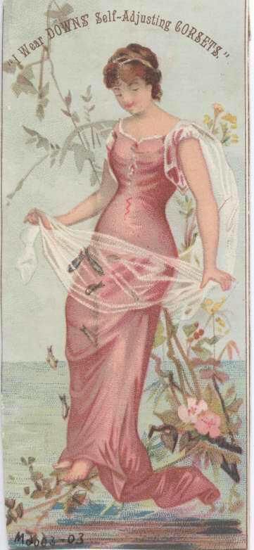 Downs Self-Adjusting Corset advertising card from Dahlem & Shepley, Minooka, IL