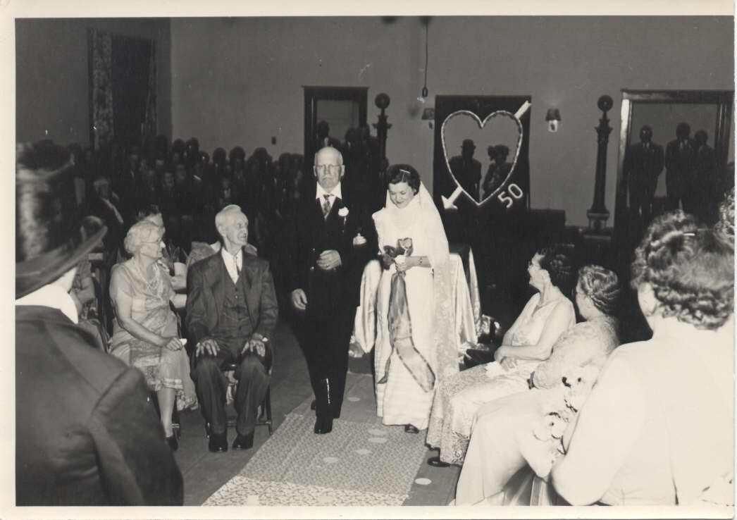 An Eastern Star ceremony - at the Minooka Masonic Lodge Hall November 20, 1950 Harvey Vaksdal - preacher, Fannie Matteson, Story Matteson, Roy Hare, Virginia Vaksdal, Ella Hare, Mildred Coady