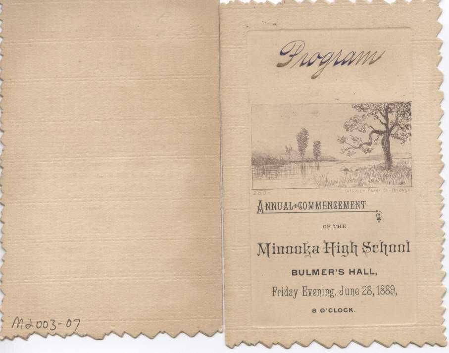 Minooka High School Graduation Announcement Bulmer's Hall June 28, 1889Scope and Content