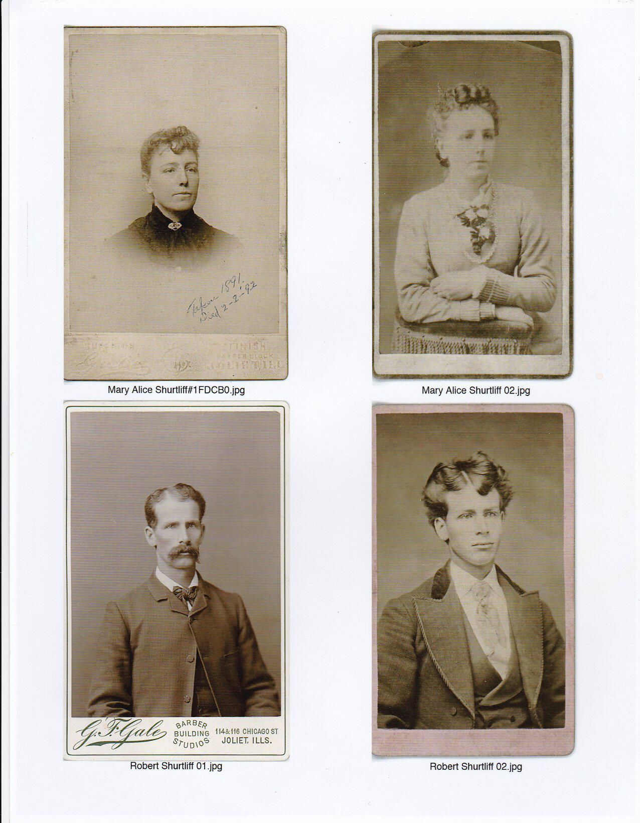 Collection of four photos of the Robert and Mary Alice Hurst Shurtliff c1890