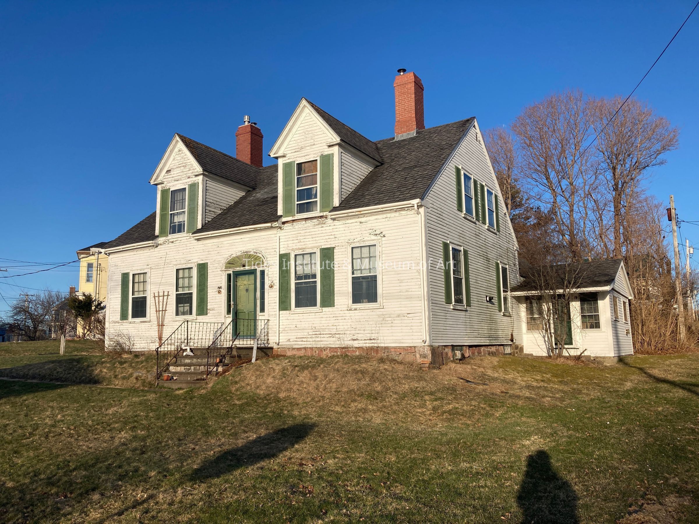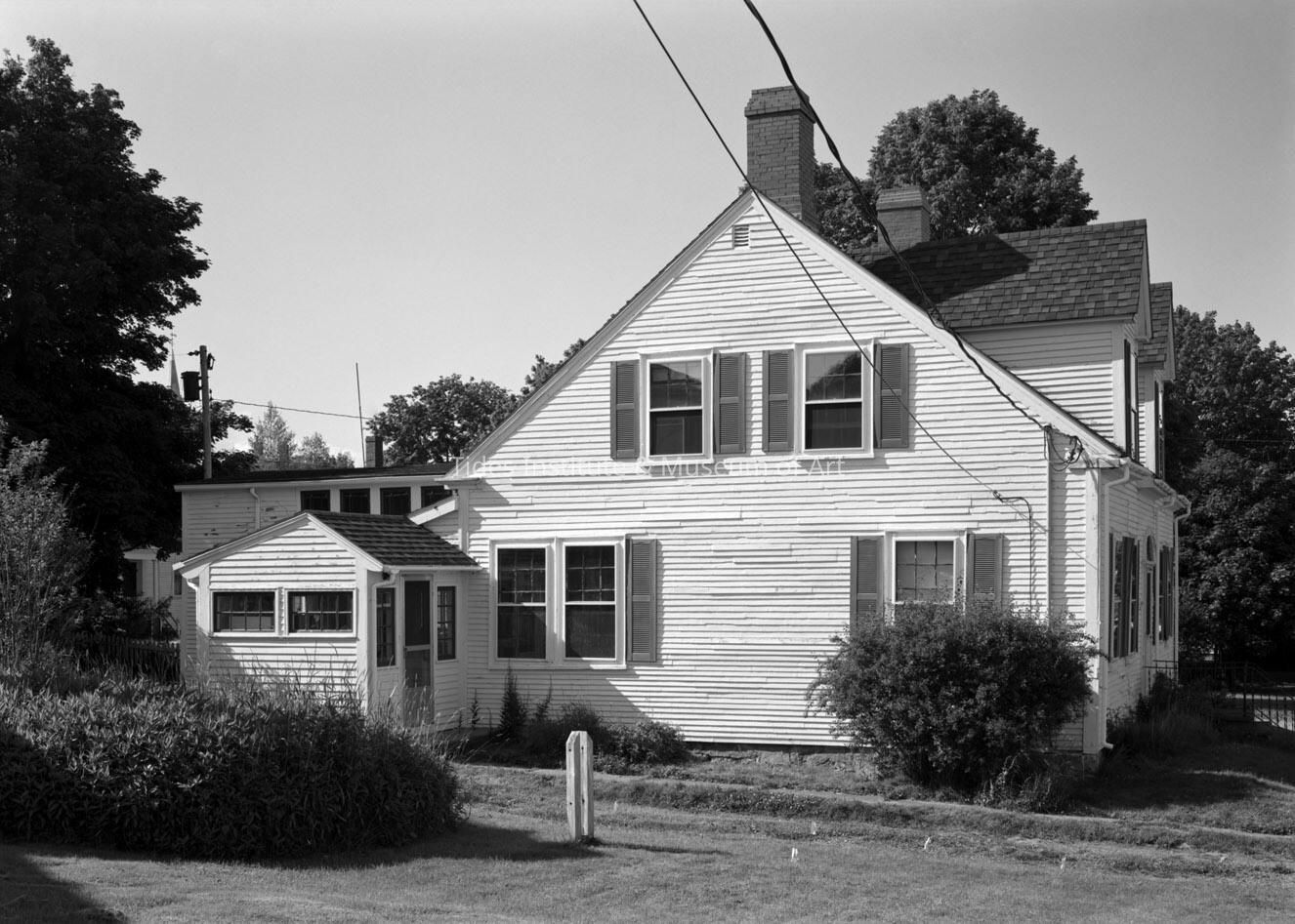 This house fortunately survived the Great Fire of October 14, 1886 which destroyed houses immediately to the east and north of it. The house was built c.1840. It is a larger and taller wood frame cape cod style house than those nearby with two dormer windows on the front side. It has a five bay first story front with center doorway with a surrounding fanlight above the door and sidelight panels on either side of the door. The house has wooden clapboard siding. There are six fireplaces in the house including a large one in the northwest room of the main house that was originally used for cooking. This fireplace has a beehive oven. The front staircase is original to the house. The house has a later two story rear ell addition. The first floor of this addition was used as a medical practice in the second half of the 20th century. A small one story addition extends off the ell and once served as the entry way and waiting room for the medical practice.