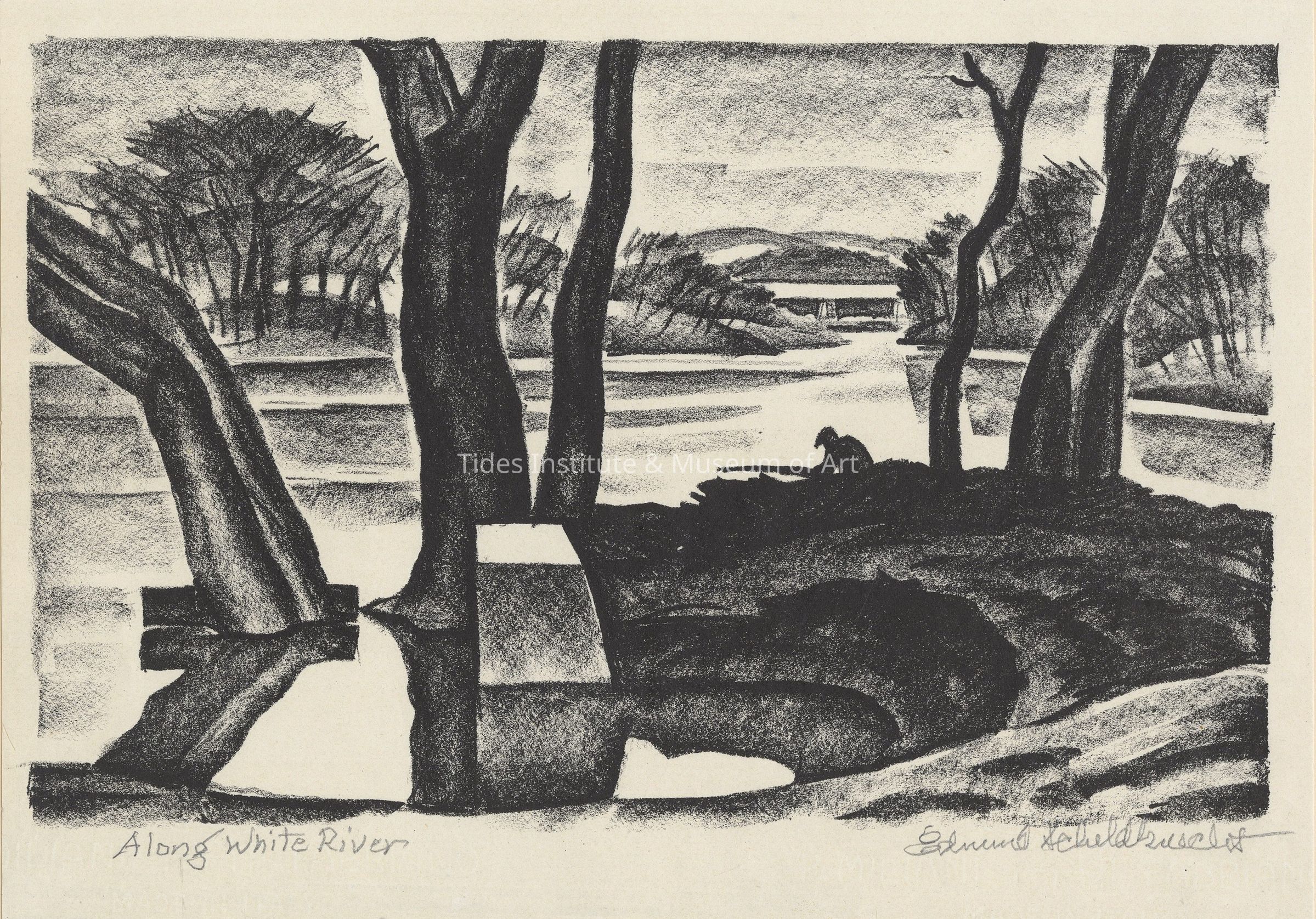 On sheet of card board behind lithograph is written "Gift of Ed Schildknecht to Mary Fraser, Oct. 29th, 1974." Mary Fraser was an aunt of John Knapp.