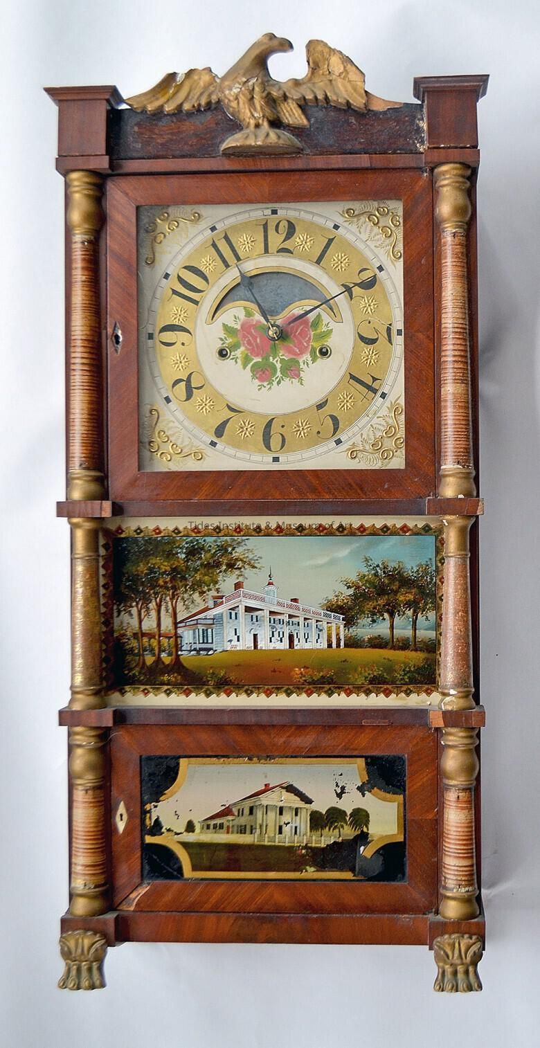 Federal Period Clock, c.1830s | Elm Cottage | Eastport, Maine | Eight day clock. Barns, Bartholomew & Company, Bristol, Connecticut,Description