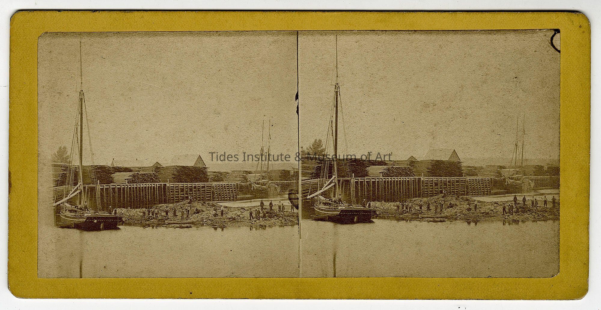 Stereoview of Machias River, Wiswell Shipyard | Vose 1730