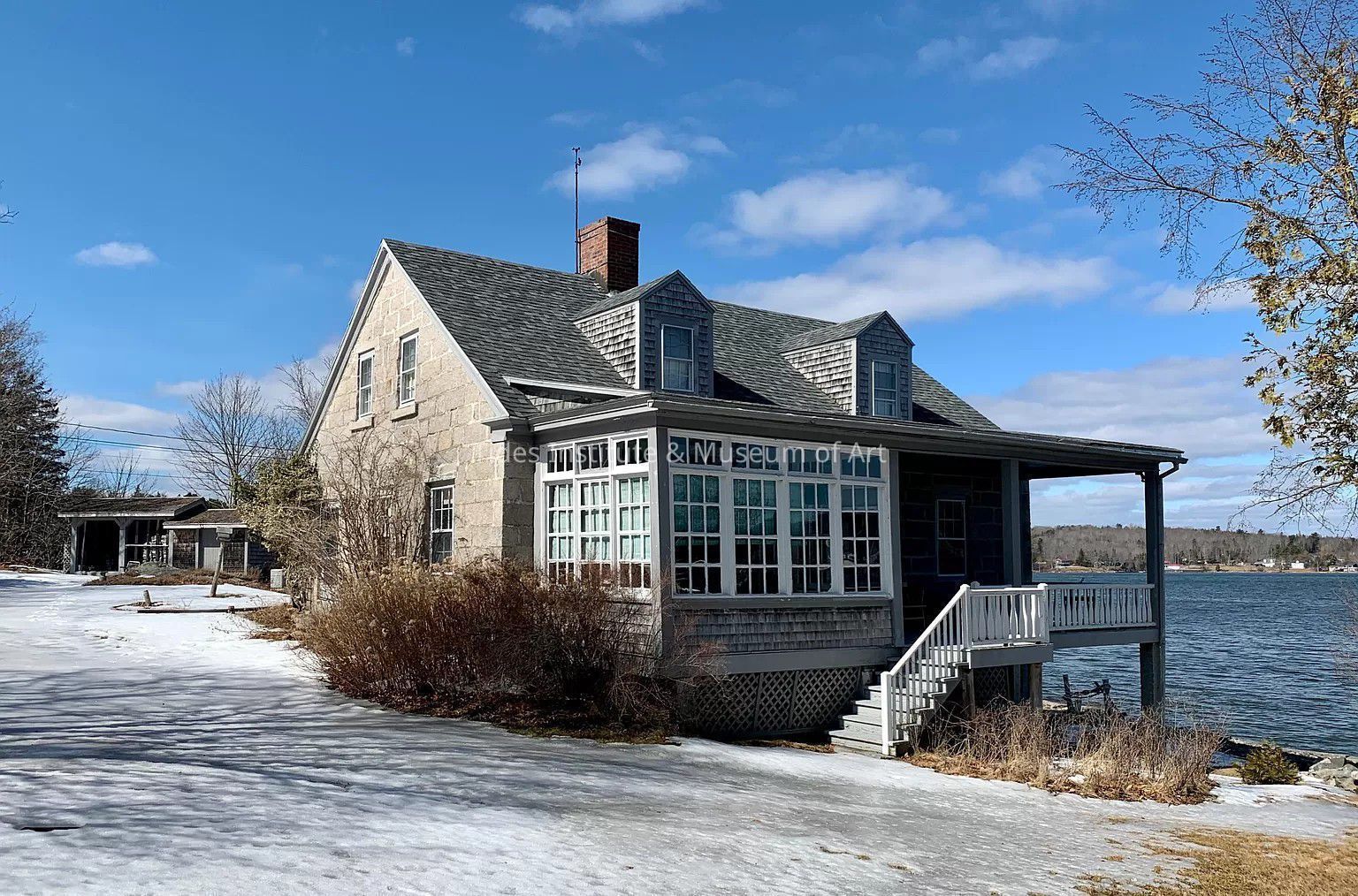 Theodore Jellison, who, in 1825, built this rare and large stone house on the bank ofthe St. Croix River, owned granite quarries in Calais so he demonstrated that a granite building could be built. Ships could be loaded with granite at his nearby . stone wharf. The one-and-one half story south side has three bays. The gable has an entrance with Greek Revival six-oversix double sash windows and Gornices. In 1925 two dormers penetrated the roof and a veranda on the east side was added. A one story wooden frame shingled ell is on the west side. A granite fireplace is in the basement. A Dutch oven on the first floor, heats the house. A reproduction of the original 1862 wall paper covers the main hall interior. F AB, JCB