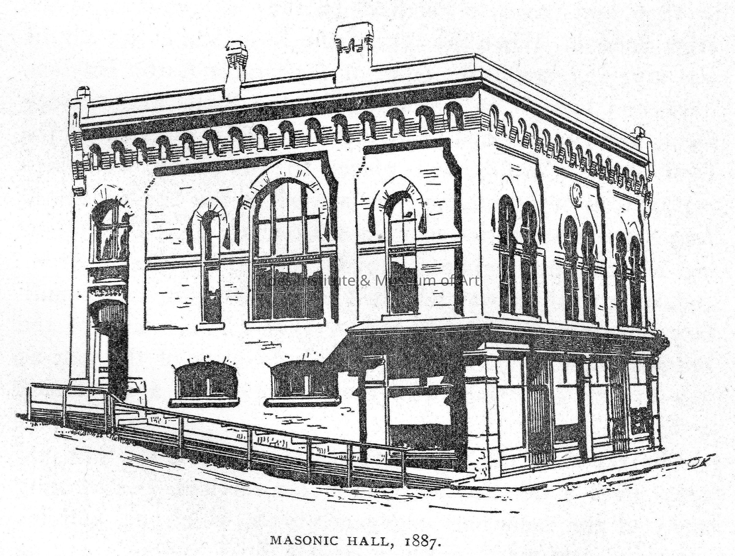 16. Masonic Block, 1887 32 Water Street. Italianate, 2 stories, brick with stone trim. Henry Black, Architect.