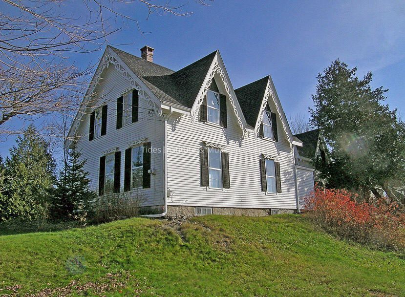Lieutenant Colonel George Kendall Hatch purchased the property for his home in 1858. Construction began about 1860, and the house was completed while Lieutenant Colonel Hatch was away at the Civil War. This Gothic Revival House is a good example of Andrew Jackson Downings cottage plans of the 1850s. It is one and one-half stories high and has eight gables with scroll-saw barge detail. Decorative woodwork is also seen on the bay window and window lintels. The house has a one story porch with arched woodwork. The Hatch family continues to own the house. AFN