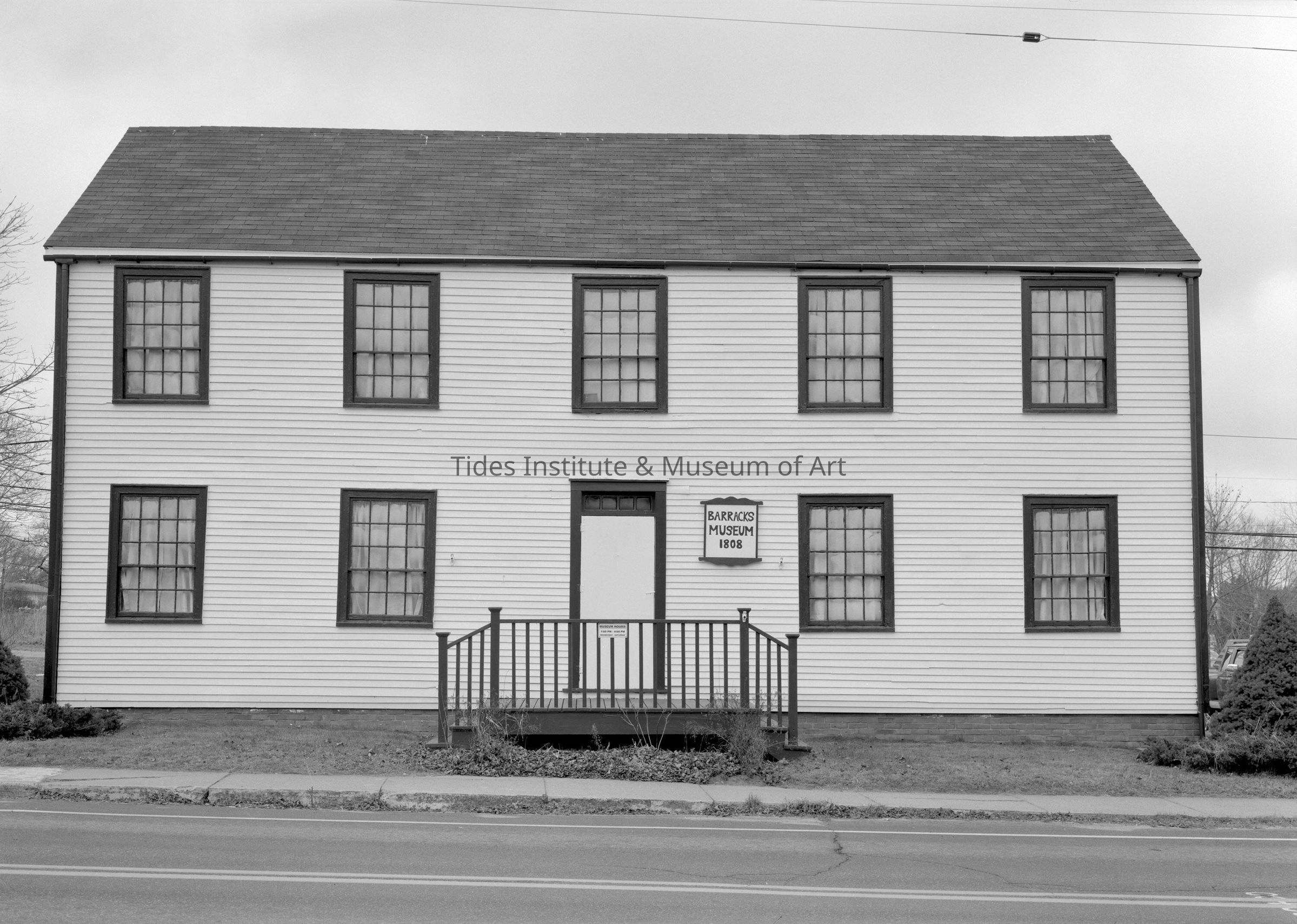 The Barracks building was once part of the Officers Quarters at Fort Sullivan and stood on Fort Hill overlooking Eastport. The building was originally constructed In 1822 as a house for the fort’s sutler and stood next to the fort's hospital. In 1827 the Army purchased the house for an addition to the northern end of the Officers' Quarters This northern section became part of the long Officers’ Quarters’ building. In 1877, soon after the fort was decommissioned in 1873, the Officers’ Quarters was cut into three pieces and sold. The northern section was moved to its present location on Washington Street..This two and one-half story wooden clapboarded structure has a five bayed front with twelve over eight light windows, and a transom light over the door. The building is owned by the Border Historical Society. It has been listed on the National Register of Historic Places since 1969.