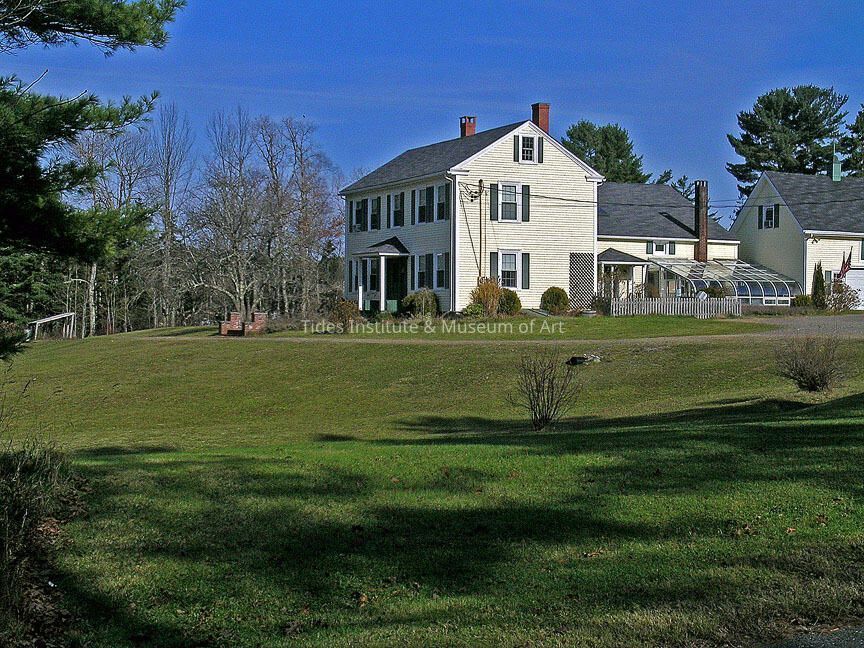 The Federal style house, located in Edmunds across Dennys River from the Lincoln House, was built for Aaron Hobart, son oflsaac, about 1830. Mr. Hobart was engaged in the lumbering and shipping business and was a member ofthe building conimittee when the Congregational Meeting House was erected in Dennysville. This gable-roofed home is two-and-one-half stories high and has a five-bayed front facing the river. RWH