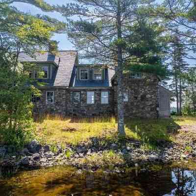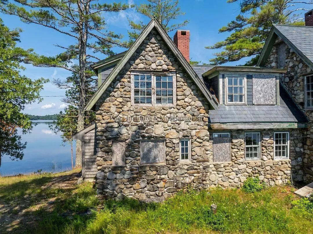 Nestled on a secluded peninsula at the deepest point of Bog Lake, the Frenning Point Stone Cottage is a one-of-a-kind property surrounded by crystal-clear waters and sweeping panoramic views. Revered by many as 'the holy grail' of lakefront properties, this is a once-in-a-lifetime opportunity to own a piece of Maine's architectural and natural heritage. Originally designed in 1915 by renowned Belmont, MA architect Herbert Thaxter Underwood, the cottage is a masterwork of slate, stone, and concrete—built to withstand the elements without sacrificing elegance. This historic landmark has stood for over a century, admired for its craftsmanship and timeless presence. Located just 14 miles from Machias and only 90 minutes north of Bangor. This property offers the perfect balance of serene privacy and convenient access to town amenities.