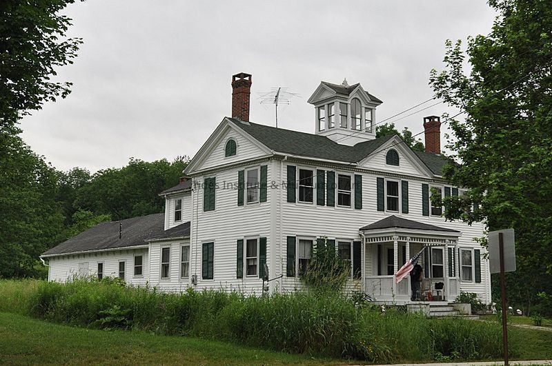 Said to have been built by housewright David W. Cartwright as a Federal period residence in 1828, this was his home until his death, and his widow was still dwelling here in 1881. This twostory, gable-roofed, wooden frame house on Main Street illustrates not only earlier architecture but also later Italianate style of the 1880's. A hipped roof porch, with balusters and turned posts, shelters a center door entrance. Five two-over-two windows on the second floor, as well as pairs on each side of the first-floor facade, are shuttered. Above the central window, of the five bays, is a denticulated cornice with round arched window. A cupola; with Palladian windows, crowns the pent gable roof at each end. Small arched windows are repeated on the pediments beneath each chimney at the gable ends. On the south side of the two-story rear ell is a one-story addition with twin dormer windows. F AB, lCB