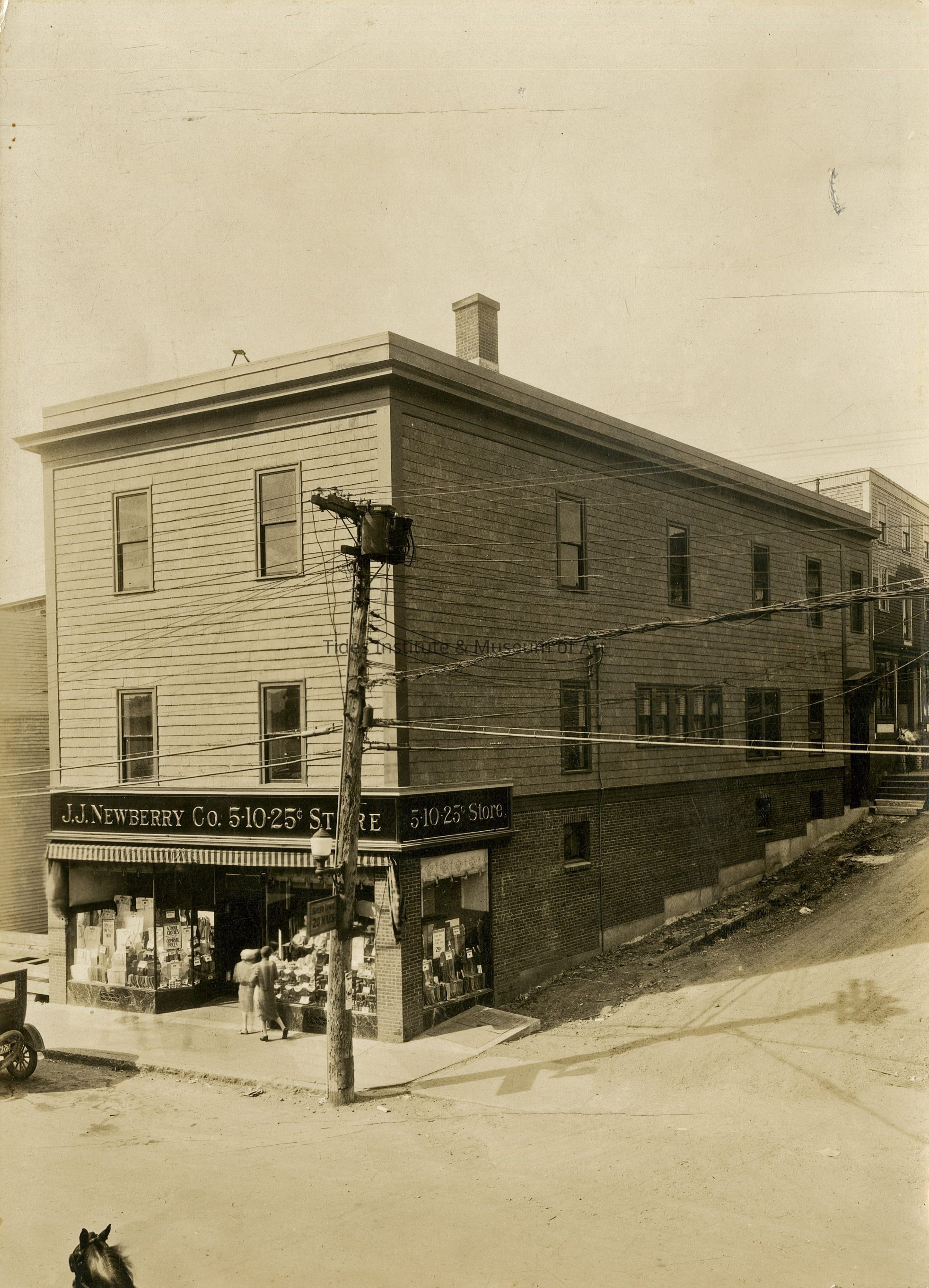 13) K of P Building (NR) 66 Water St., 1929. Leverett and Oscar B. Whalen had a dry goods store at this corner. The Knights of Pythias met on the third floor. The K of P was rebuilt after its 1928 fire and opened with J.J. Newberry\'s 5 and 10 store as a tenant on the ground floor.