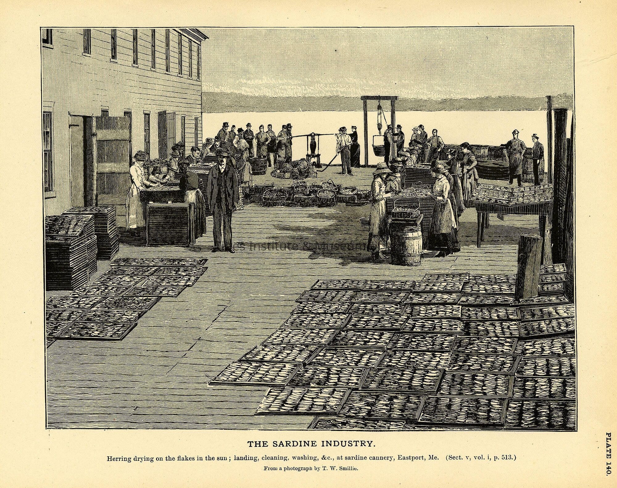 Herring drying on the flakes in the sun; landing, cleaning, washing, &c., at sardine cannery, Eastport, Me. (Sect. v, vol. i, p. 513)