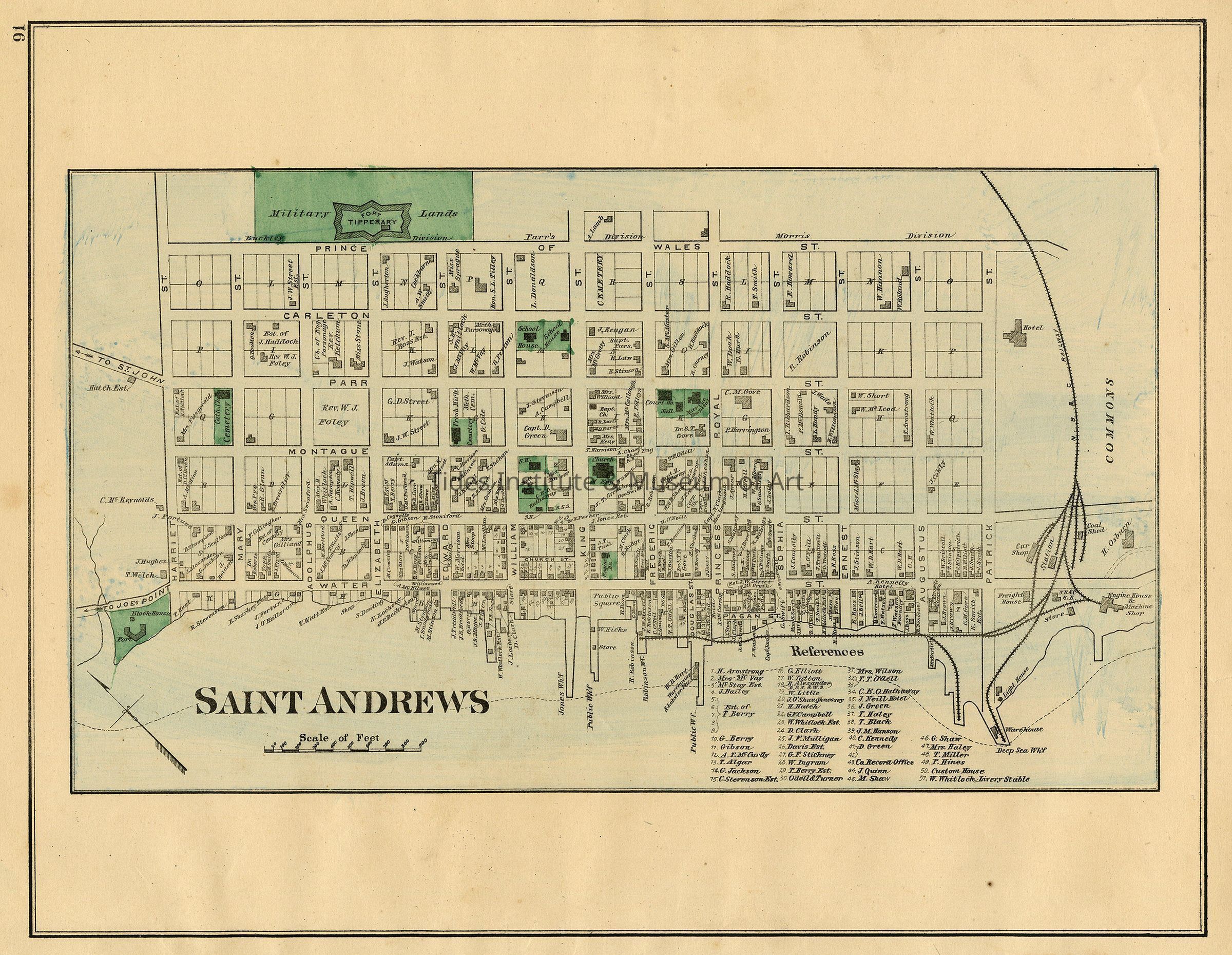 Classification: Maps Circa: 1878 Old Accession Number: 928 Description: Map of St. Andrews, New Brunswick. From: Roe Brothers' Atlas of the Maritime Provinces, Plate 91.