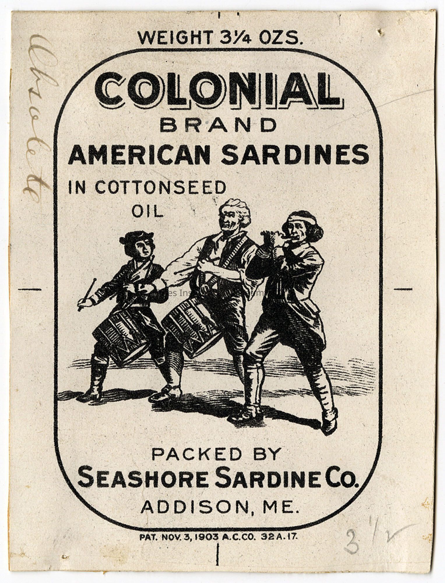 Old Accession Number: 747 Circa: 1903 Description: Packed by Seashore Sardine Co. Addison Maine.