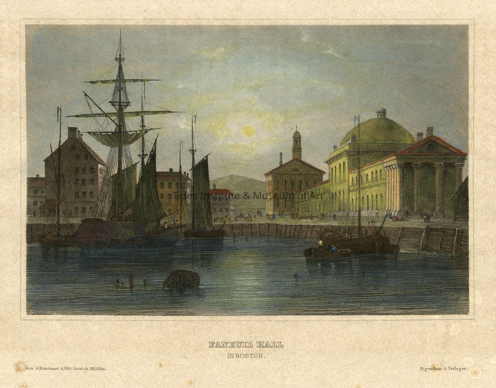 Medium: Engraving Classification: Prints Old Accession Number: 401 Description: Faneuil Hall in Boston. Aus d Kunstanst. D Bibl. Instituin Huldbhn. Eigenthum d Verleger