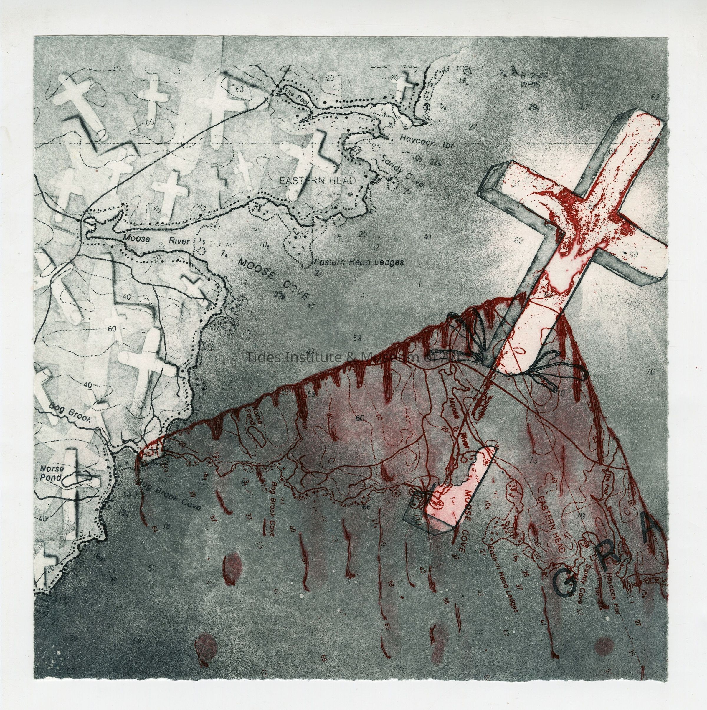 Jennifer Burke (intaglio) – What would I have felt if I had lived peacefully on my land and then new settlers had taken over? I would have felt forced – forced to do things I didn’t want to, in order to survive. I used force, the idea and the physicality of it, to create my intaglio print.