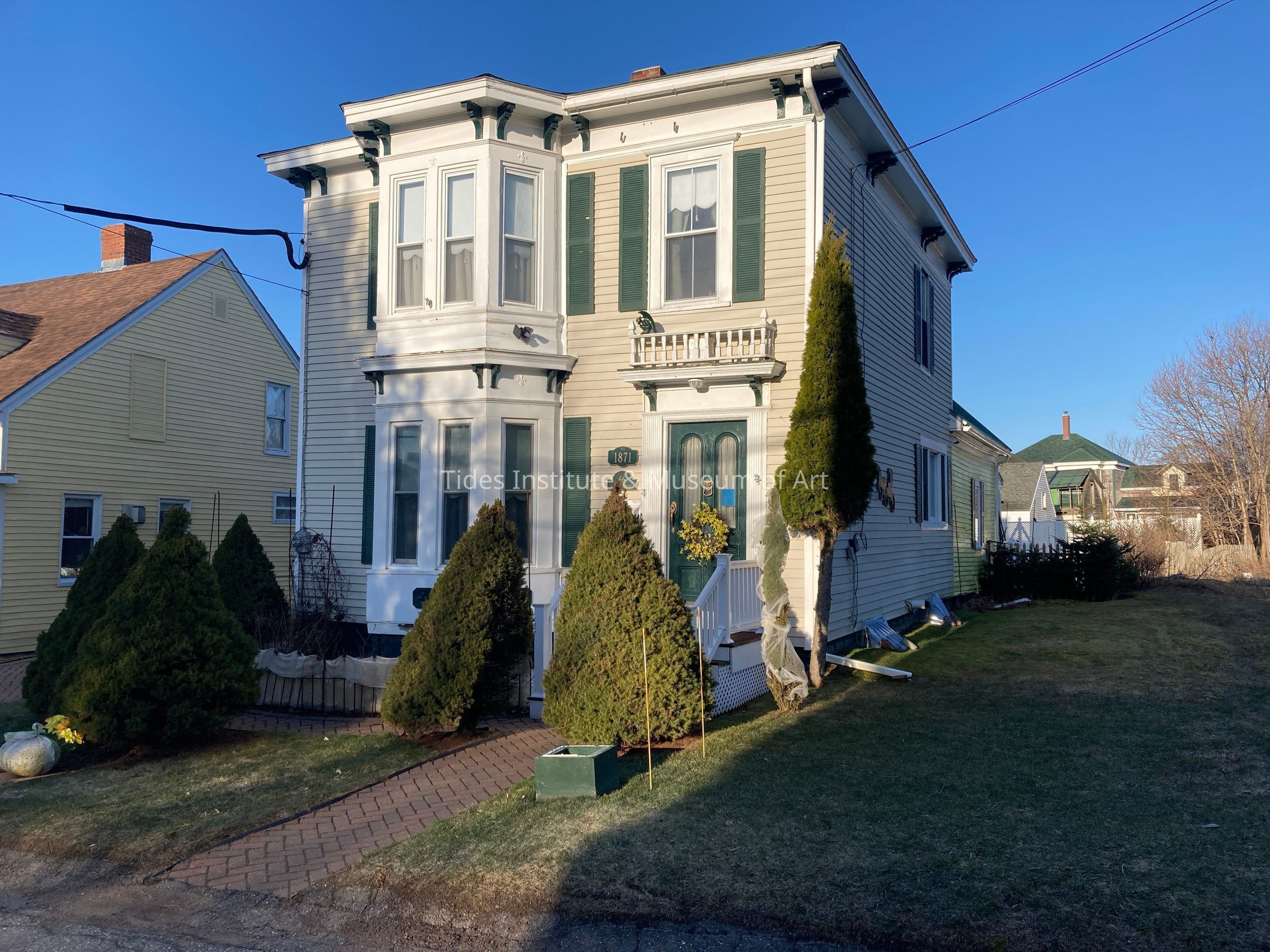 This two story wood frame Italianate style building was built in 1871. It has a two story bay window in the front along with the main entrance.